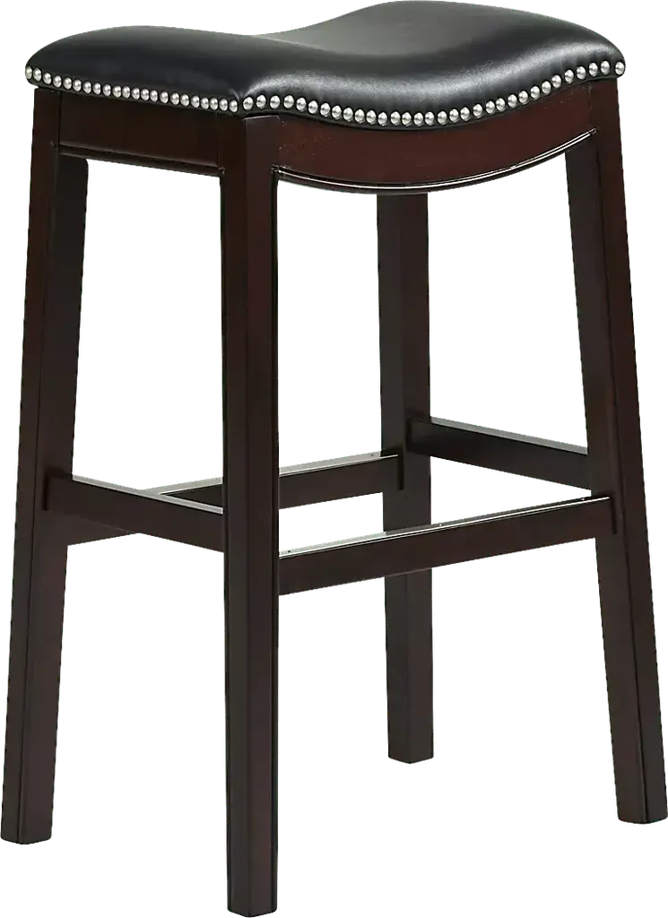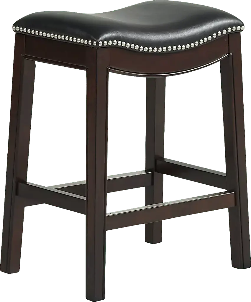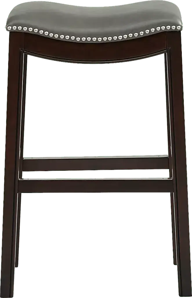 Sleek and stylish, the Samford barstool creates a polished atmosphere for mealtime and cocktail hour. Crafted with fine detail, this barstool boasts a rich brown finish. Its traditional backless design showcases silver nailhead accents and smooth, leather-like upholstery in gray.