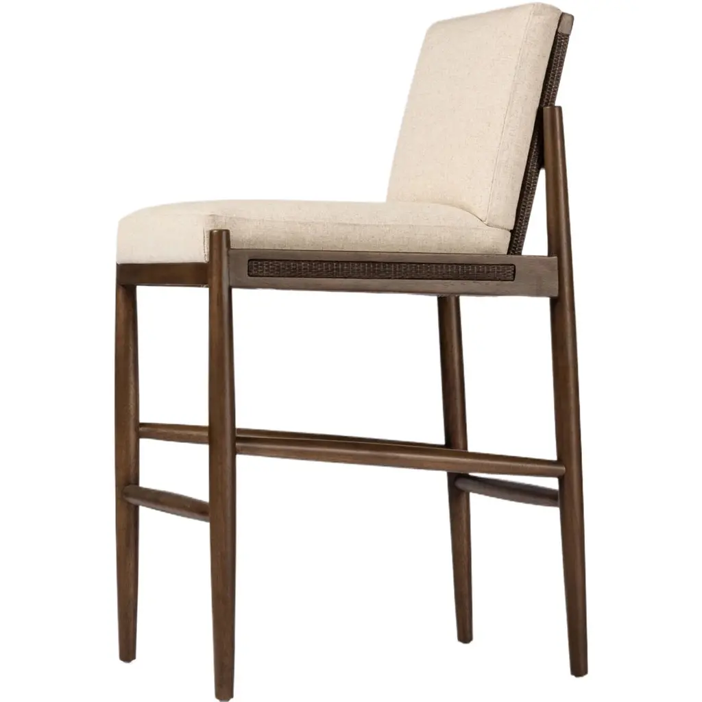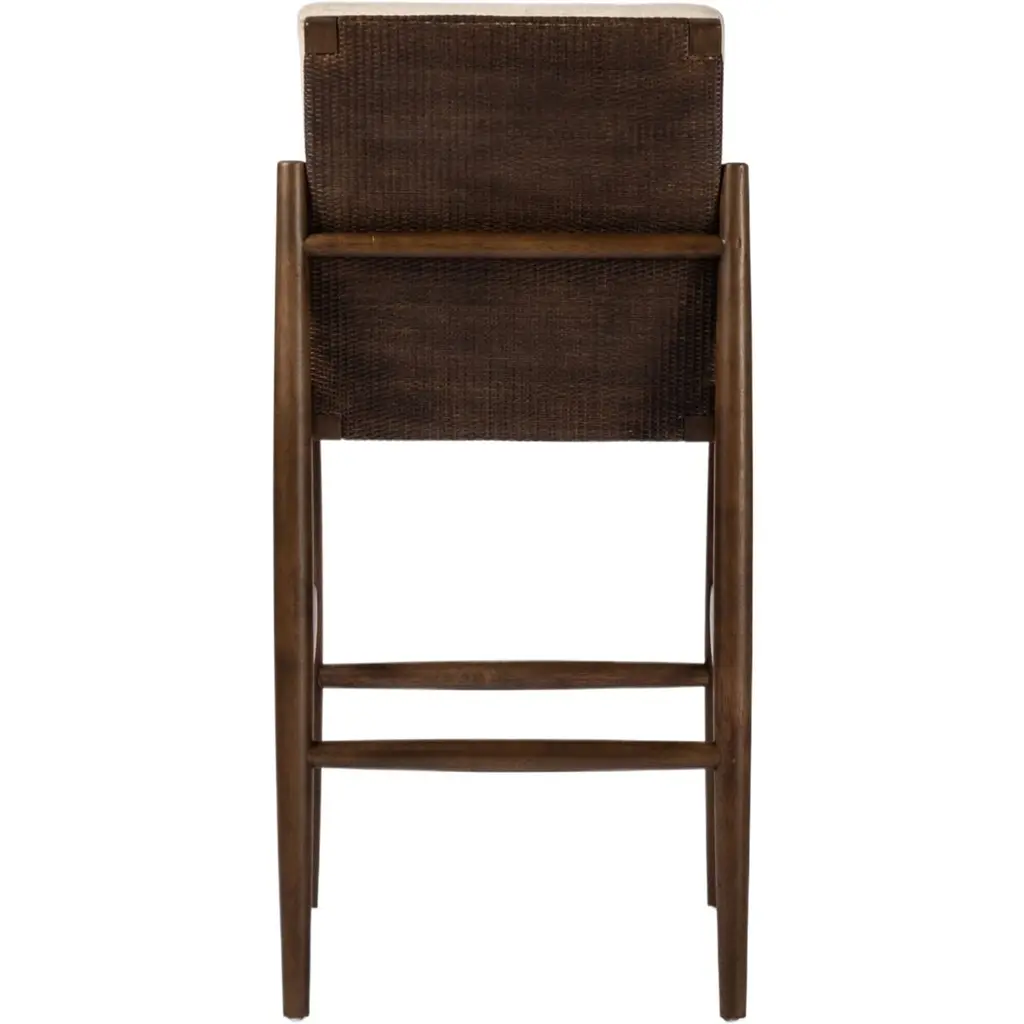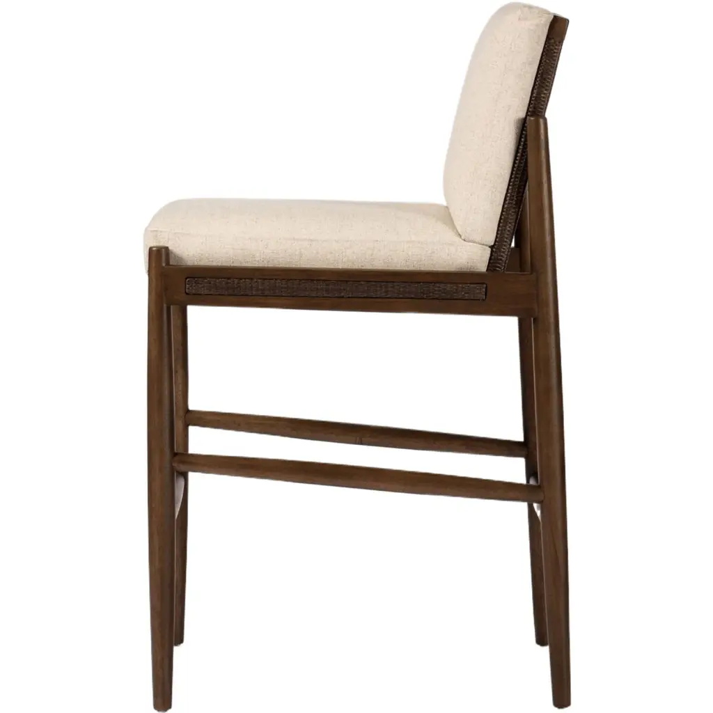 The traditional rattan chair gets an elevated look in this heritage-inspired bar stool. Clean lines create a sleek wood frame that provides a simple backdrop to mixed materials. Designed with rattan accents on the side, while natural performance linen provides practical seating for everyday use. Performance fabrics are specially created to withstand spills, stains, high traffic and wear, ensuring long-term comfort and unmatched durability.