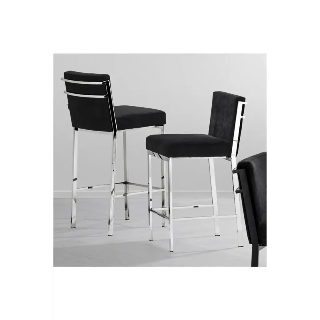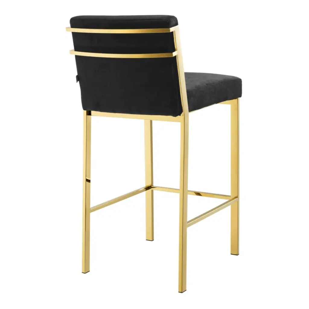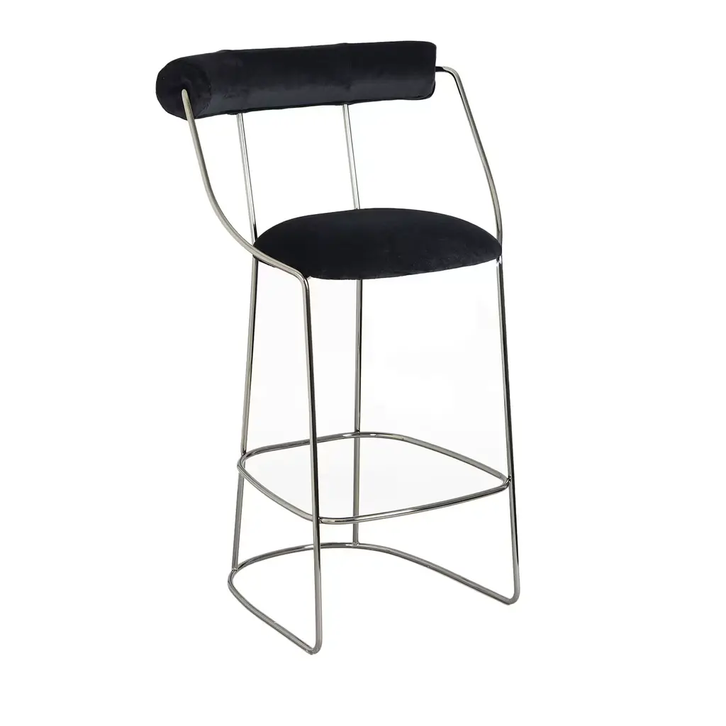 Offer an industrial twist to your casual or formal lounge or dining room interior with the luxury Scott Barstool. Its sturdy frame with footrest adds versatile appeal to your urban modern decor while its black velvet seat offers a comfortable seating experience.