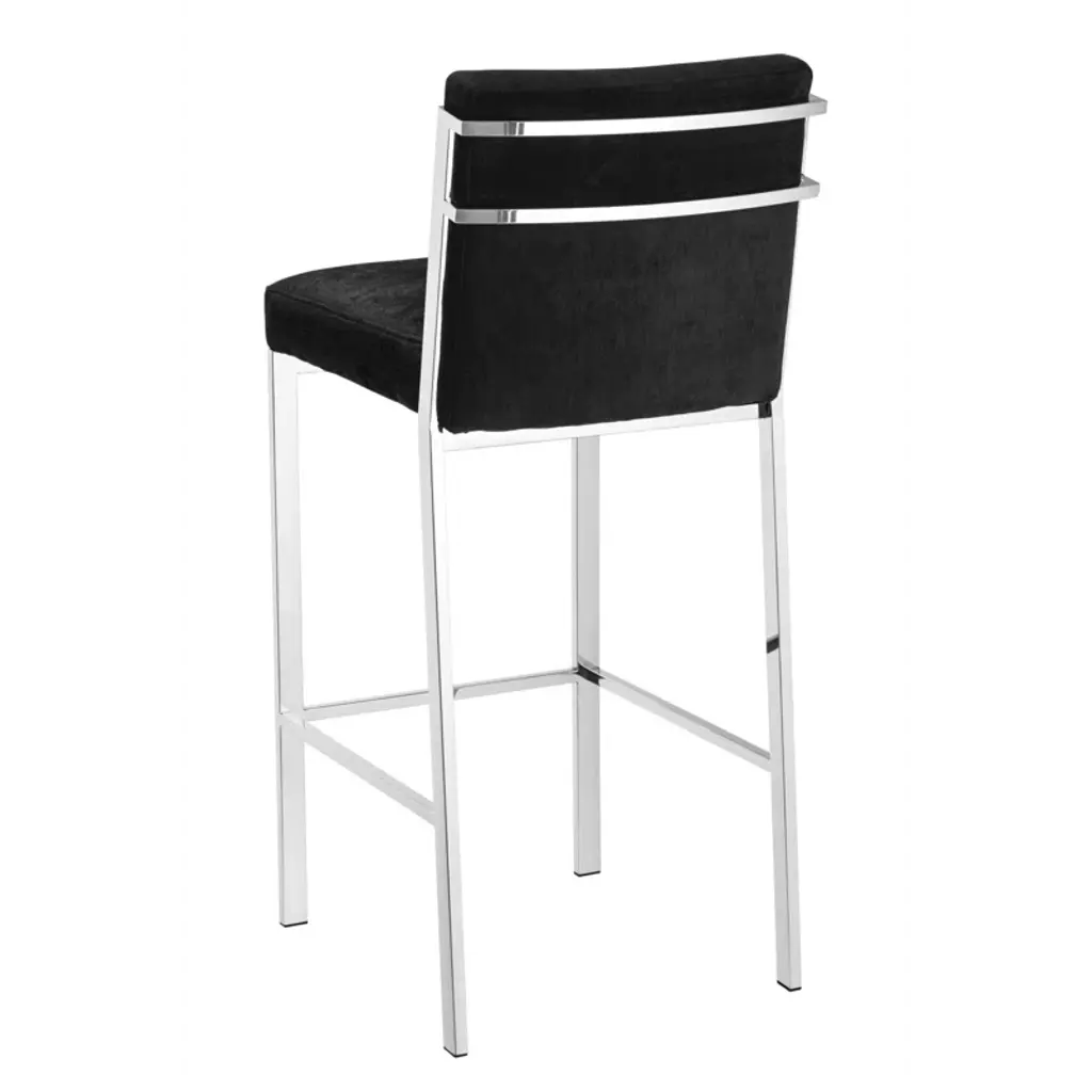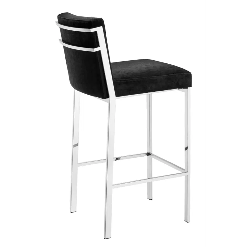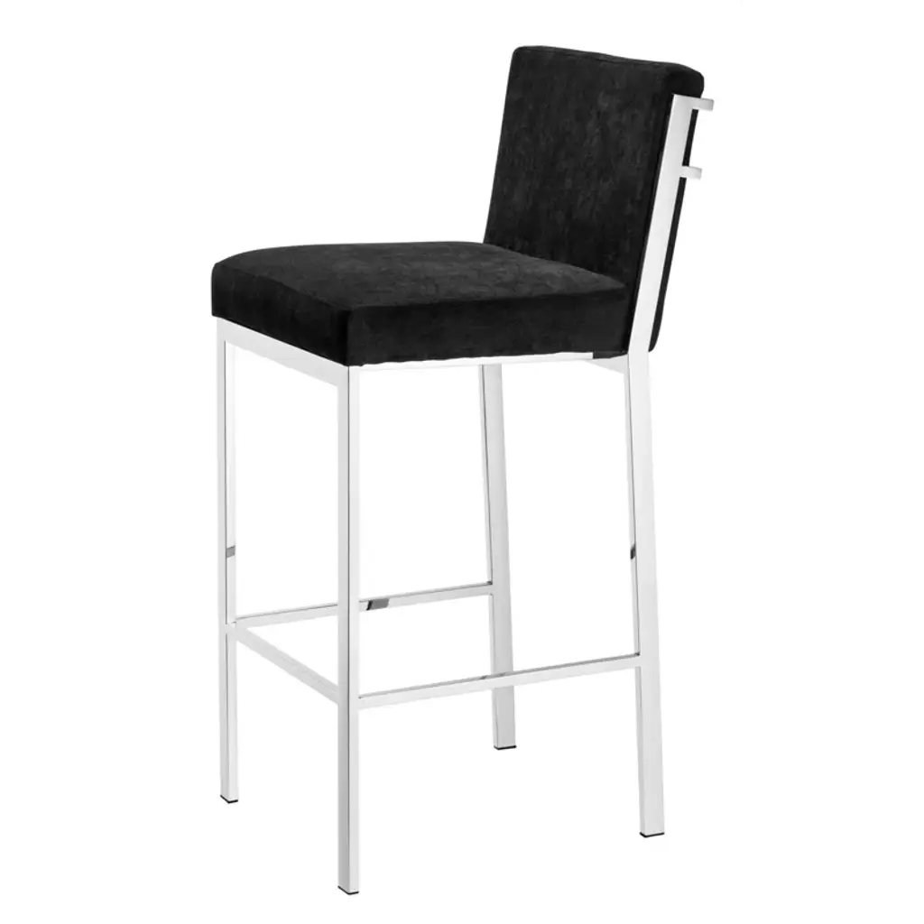 Offer an industrial twist to your casual or formal lounge or dining room interior with the luxury Scott Barstool. Its sturdy frame with footrest adds versatile appeal to your urban modern decor while its black velvet seat offers a comfortable seating experience.