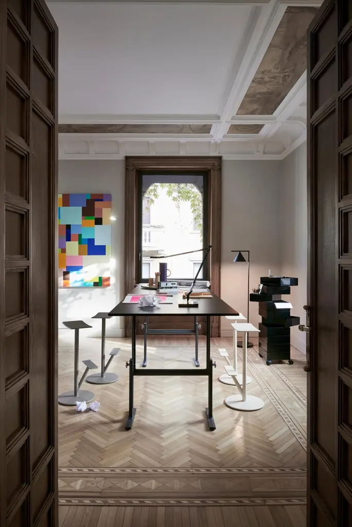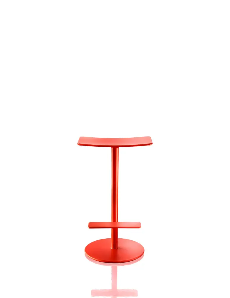 The project name of our ‘Sequoia’ bar stool was ‘Forest’, as the division of the stem into two tubes reminded us of a solid branch growing out of tree trunk.Sequoia has a clear recognizable, unified graphical outline - it reminds us of a calligraphical character. The foot rest has the shape of a foot plate. This gives a certain freedom of movement: it’s like we’ve lifted a segment of the floor. To us, the similarity in shape between the seat and foot rest is an important feature as it makes more meaning of the branch like division of the stem. We looked into various mate- rial technologies before we landed on a construction that is inspired by how bicycle frames are put together.Stool for domestic and contract use (bars and restaurants). Materials: steel painted in polyester powder. Flame-retardant.