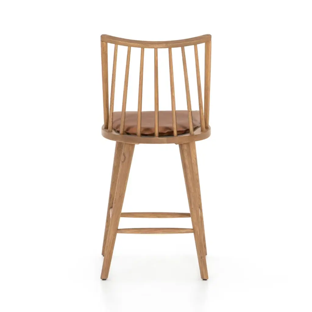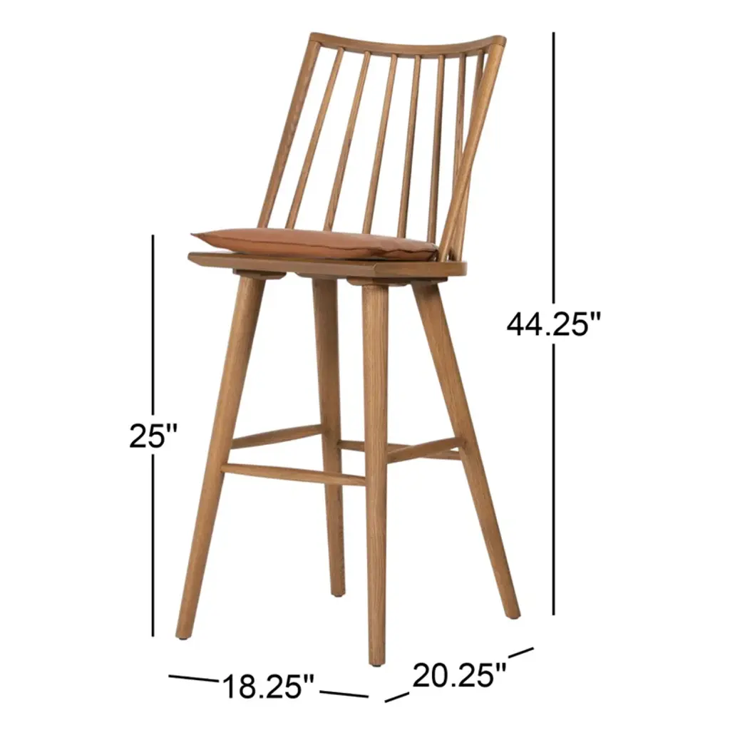 This barstool puts a modern spin on the traditional Windsor chair. It's crafted from solid oak wood in a sandy hue that highlights the wood's natural grain, and the cotton-filled seat cushion boasts sheepskin upholstery for a cozy touch. We love that it has a built-in footrest for added support, and the curved back gives this stool a contemporary look. Best of all, it arrives fully assembled, so you can skip straight to the fun part – styling.