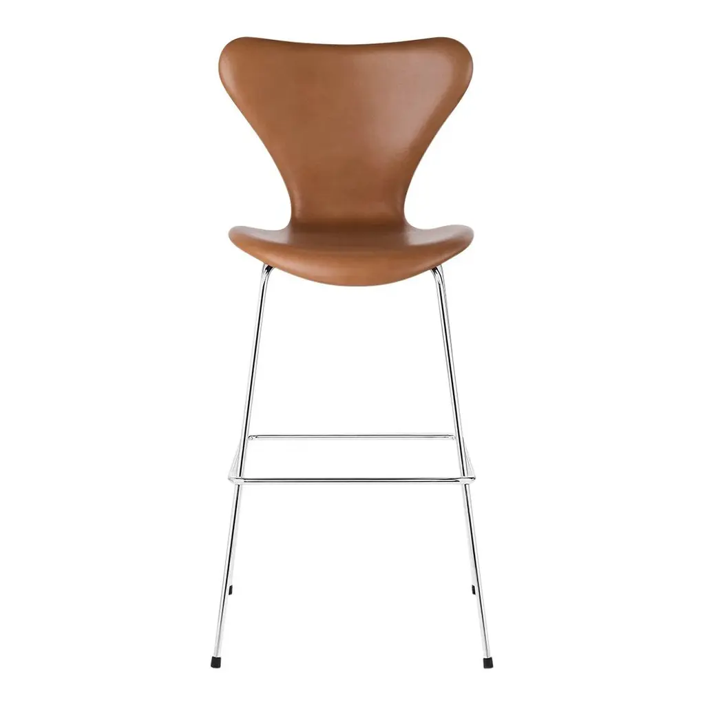 The Series 7 designed by Arne Jacobsen is by far the most sold chair in the history of Fritz Hansen and perhaps also in furniture history. The pressure moulded veneer chair is a further development of the classic Ant chair. The four-legged stackable chair represents the culmination of the lamination technique. The visionary Arne Jacobsen exploited the possibilities of lamination to perfection resulting in the iconic shape of the chair. Series 7 represents the chair in the Fritz Hansen collection with the widest range of applications.