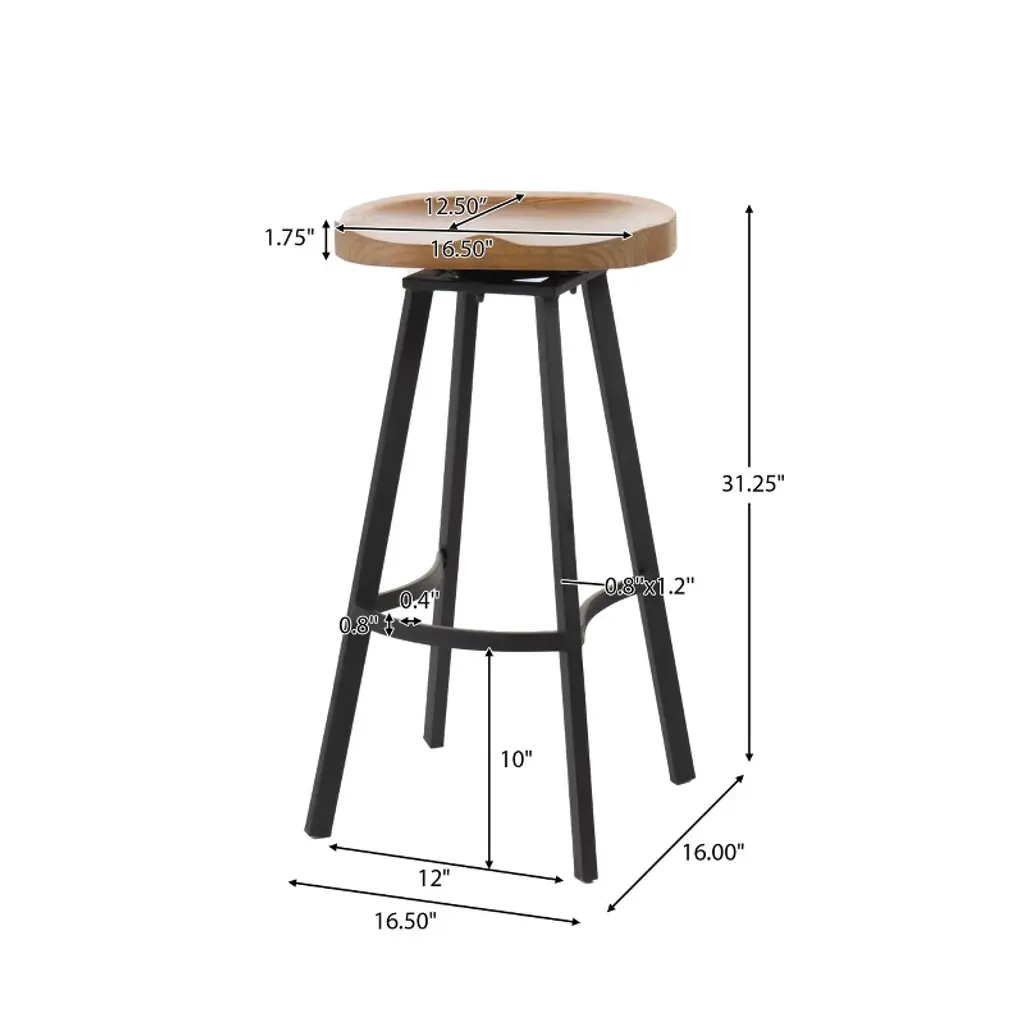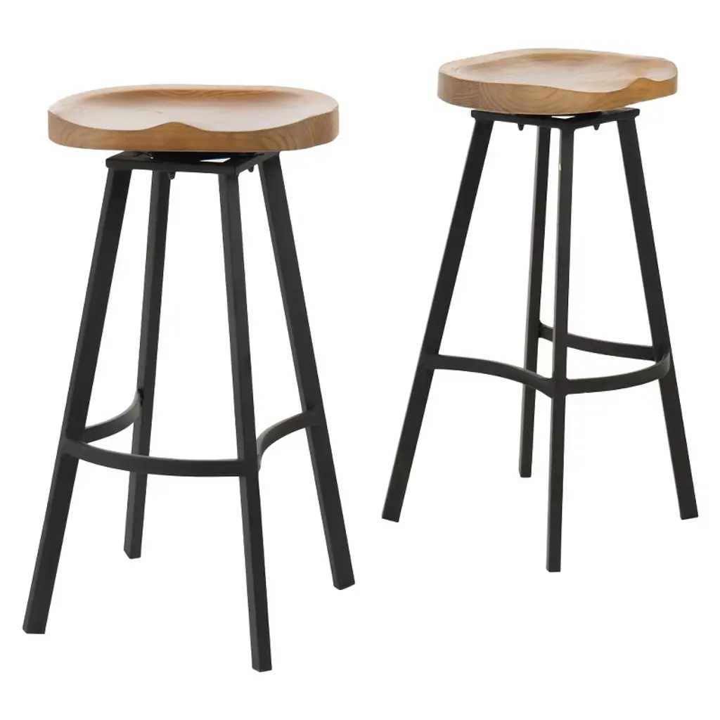 Enjoy these antique styled barstools in your home today. Featuring a naturally finished Pinewood seat and iron frame, not only is this barstool comfortable, but you can spin any direction you want, allowing conversation to flow around you without you missing a beat. This barstool has stylish curves that only add to the overall appeal of the barstool.