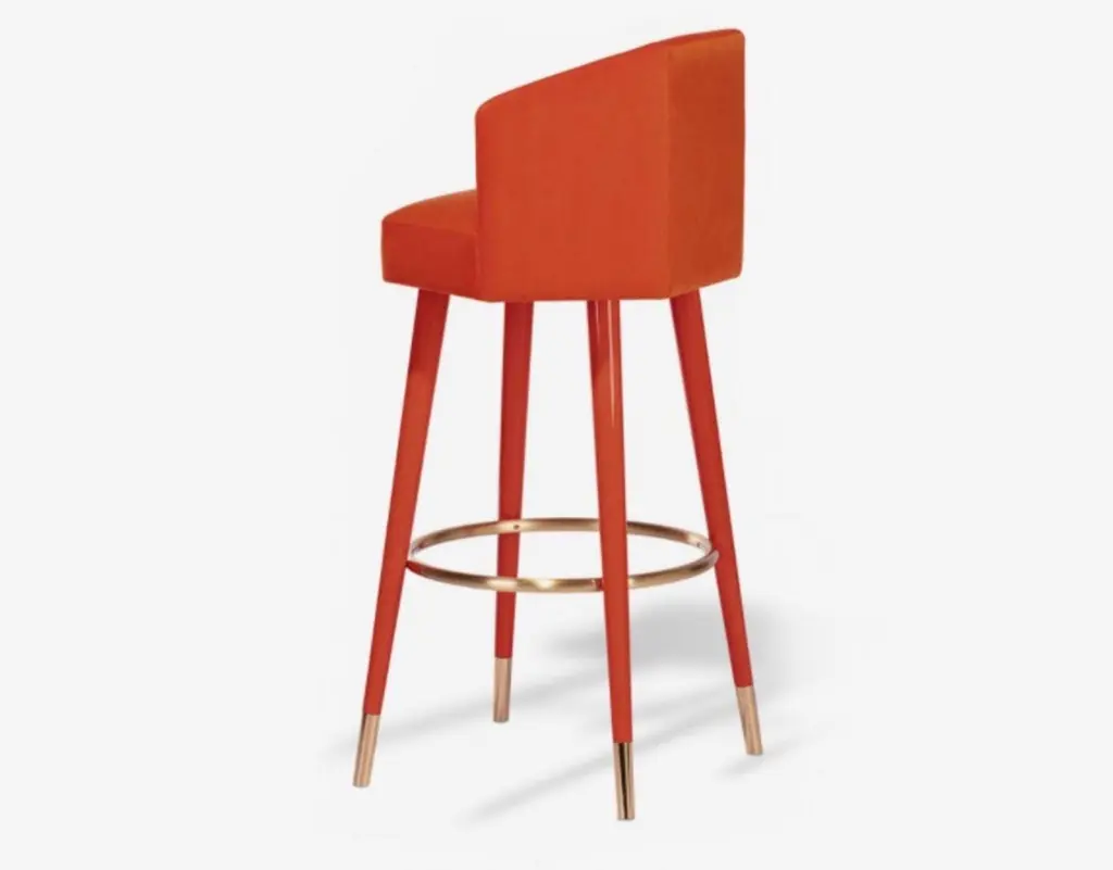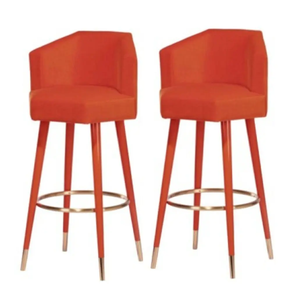 Set of 2 Beelicious bar stools, Royal StrangerDimensions: 54.5 x 46 x 107 cmMaterials: Upholstery Zinnia cotton velvet. Legs Zinnia lacquered wood with glossy finish. Feet covers and footrest Brushed Brass.Royal Stranger is an exclusive furniture brand determined to bring you the best unique pieces of art and design.Fusing design, art and the best craftsmanship, they strive to deliver the best state of the handmade art furniture. The design team works every day to create meaningful products that represent values such as passion, function, aesthetics and know-how. Values that are meant to represent Royal Stranger’s DNA. This dedication is present at all stages of production and the combination of craftsmanship and innovative design contributes toour final purpose: to produce certified high-quality products, made with passion and expertise and using royal materials such as gold leaf, rich woods and high quality lacquers.It was in 2013, as an architects, that Sofia Santos & Rui Santos started to push the boundaries of innovation in several retail design concepts for some of the best stores in Portugal. This will has always been present in their work, and that’s how the brand was born.