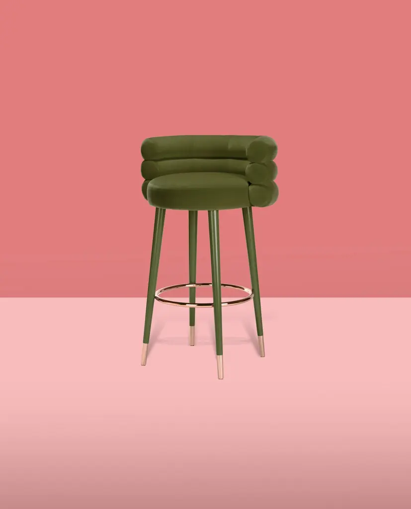 Set of 2 Marshmallow bar stools, Royal StrangerDimensions: 100 x 70 x 60 cmMaterials: Velvet upholstery, brassAvailable in: Mint green, light pink, Royal green, Royal redRoyal stranger is an exclusive furniture brand determined to bring you the best unique pieces of art and design.Fusing design, art and the best craftsmanship, they strive to deliver the best state of the handmade art furniture. The design team works every day to create meaningful products that represent values such as passion, function, aesthetics and know-how. Values that are meant to represent Royal stranger’s DNA. This dedication is present at all stages of production and the combination of craftsmanship and innovative design contributes toour final purpose: to produce certified high-quality products, made with passion and expertise and using royal materials such as gold leaf, rich woods and high quality lacquers.It was in 2013, as an architects, that Sofia Santos & Rui Santos started to push the boundaries of innovation in several retail design concepts for some of the best stores in Portugal. This will has always been present in their work, and that’s how the brand was born.