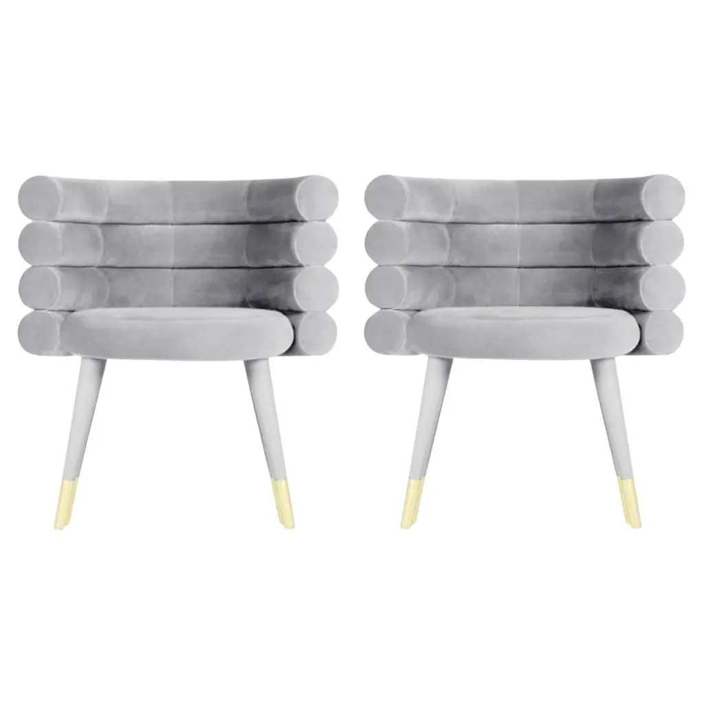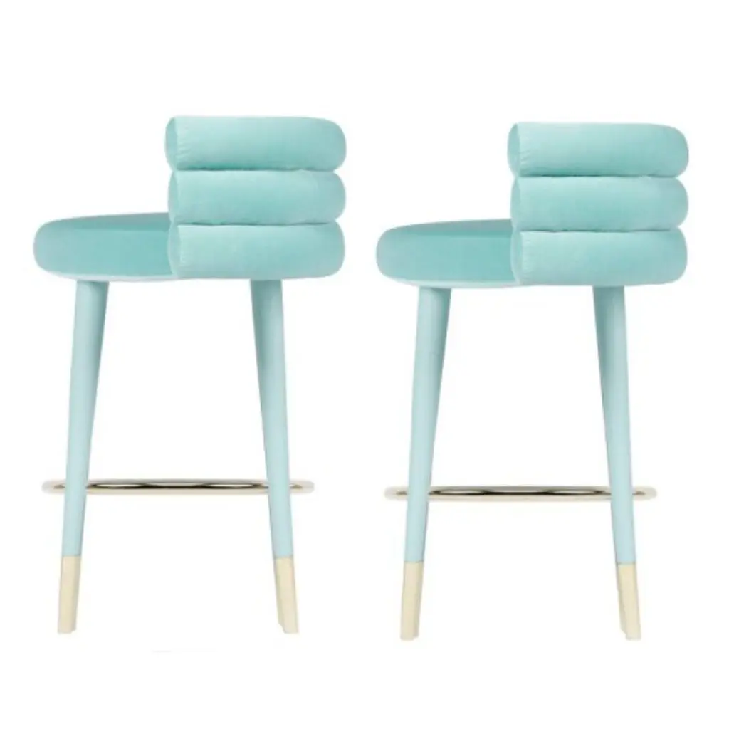 Set of 2 marshmallow bar stools, Royal StrangerDimensions: 100 x 70 x 60 cm.Materials: Velvet upholstery, brass.Available in: Mint green, light pink, Royal green, Royal red.Royal stranger is an exclusive furniture brand determined to bring you the best unique pieces of art and design.Fusing design, art and the best craftsmanship, they strive to deliver the best state of the handmade art furniture. The design team works every day to create meaningful products that represent values such as passion, function, aesthetics and know-how. Values that are meant to represent Royal stranger’s DNA. This dedication is present at all stages of production and the combination of craftsmanship and innovative design contributes toour final purpose: to produce certified high-quality products, made with passion and expertise and using royal materials such as gold leaf, rich woods and high quality lacquers.It was in 2013, as an architects, that Sofia Santos & Rui Santos started to push the boundaries of innovation in several retail design concepts for some of the best stores in Portugal. This will has always been present in their work, and that’s how the brand was born.