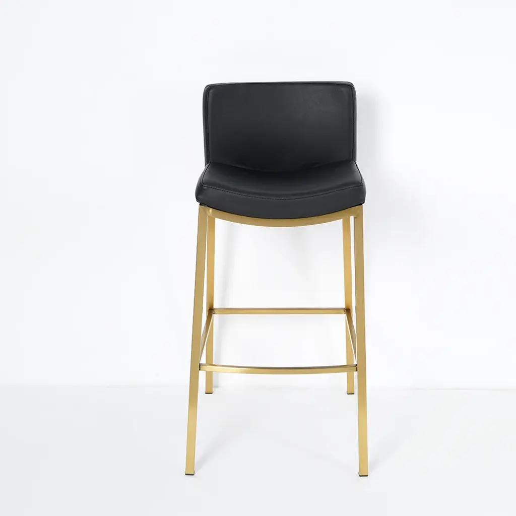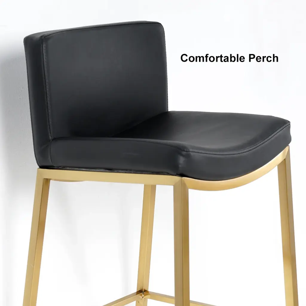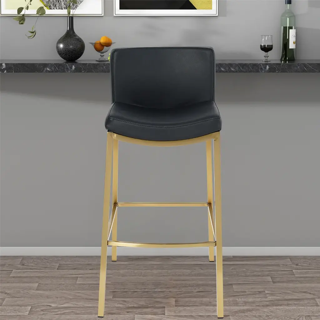 With an ergonomic design of perfect height, this bar stool becomes a great option for you to chat with your friends. Upholstered in faux leather and filled with elastic foam, the wide seat offers you incredible comfort. This barstool also features built-in footrest to provide added relaxation. Founded atop four sturdy legs, the metal frame ensures steady support and a long-lasting option. Perfect tucked under a kitchen island.