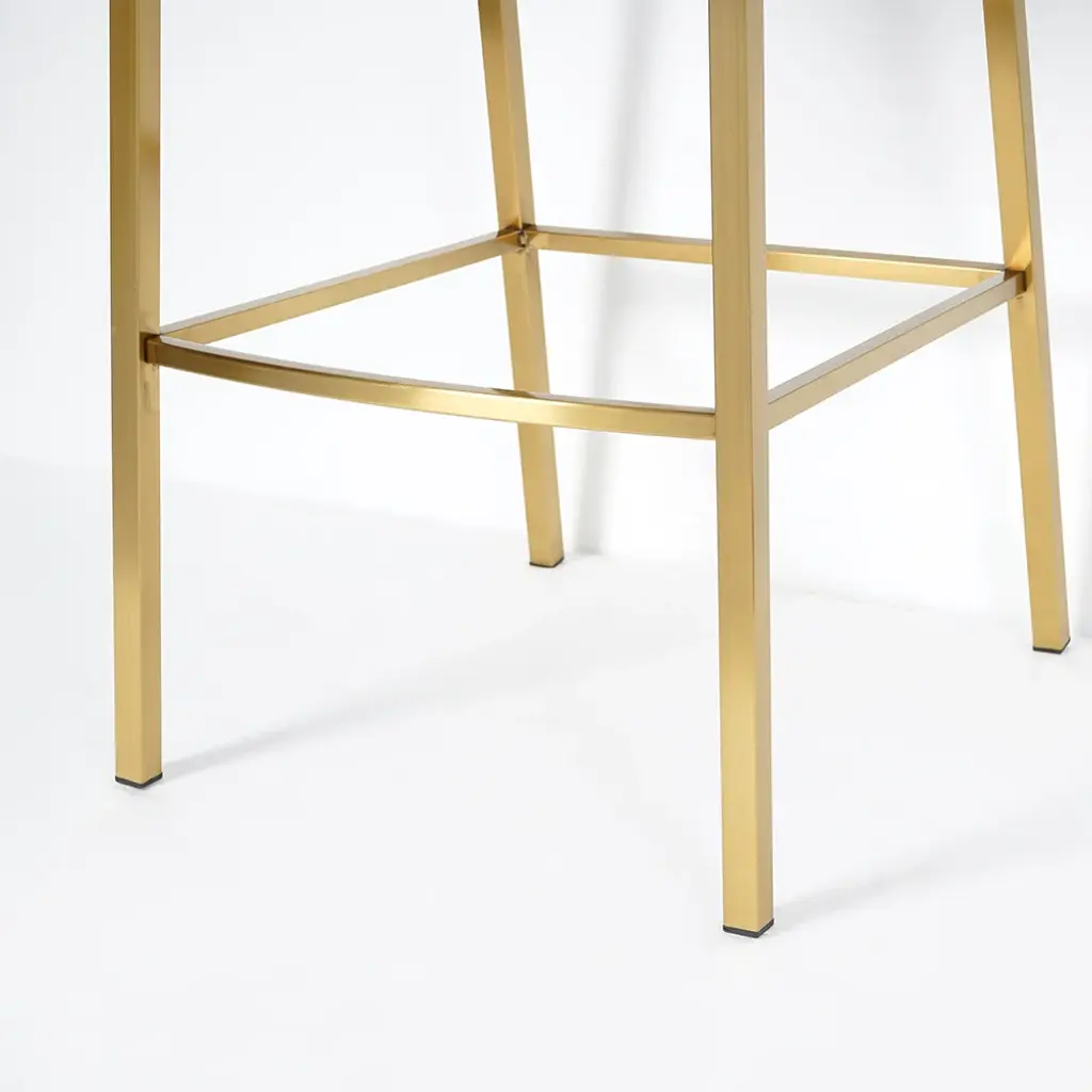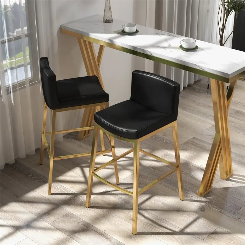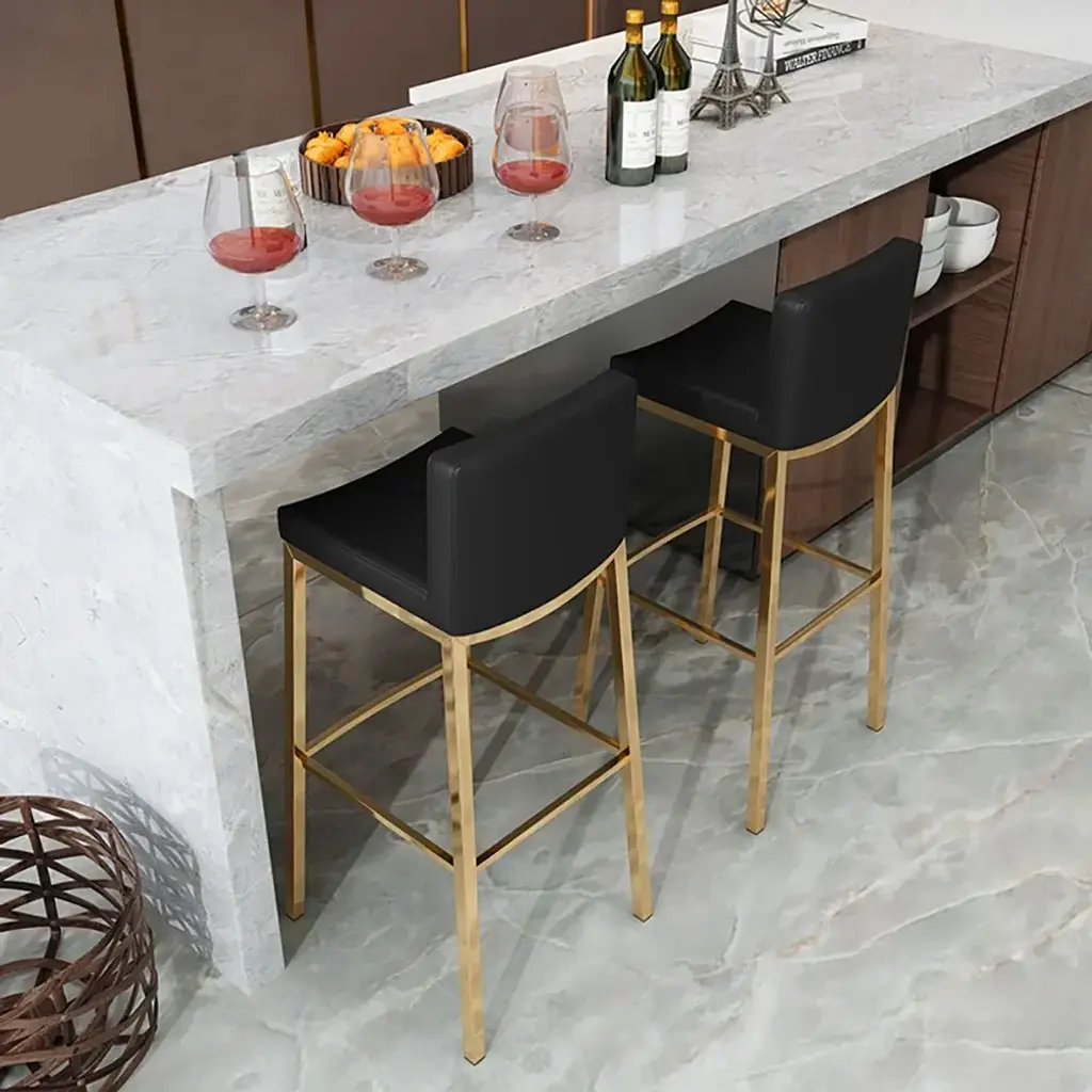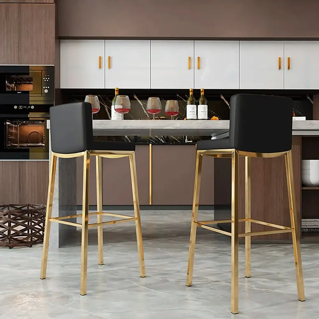 With an ergonomic design of perfect height, this bar stool becomes a great option for you to chat with your friends. Upholstered in faux leather and filled with elastic foam, the wide seat offers you incredible comfort. This barstool also features built-in footrest to provide added relaxation. Founded atop four sturdy legs, the metal frame ensures steady support and a long-lasting option. Perfect tucked under a kitchen island.