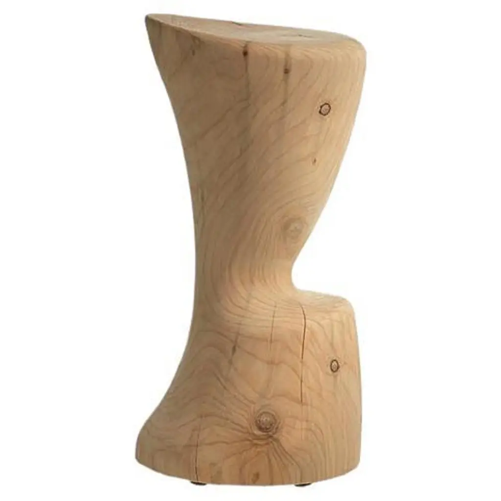 Set Of 2 Outdoor Barstools Carved From A Single Block Of Scented Cedar Wood