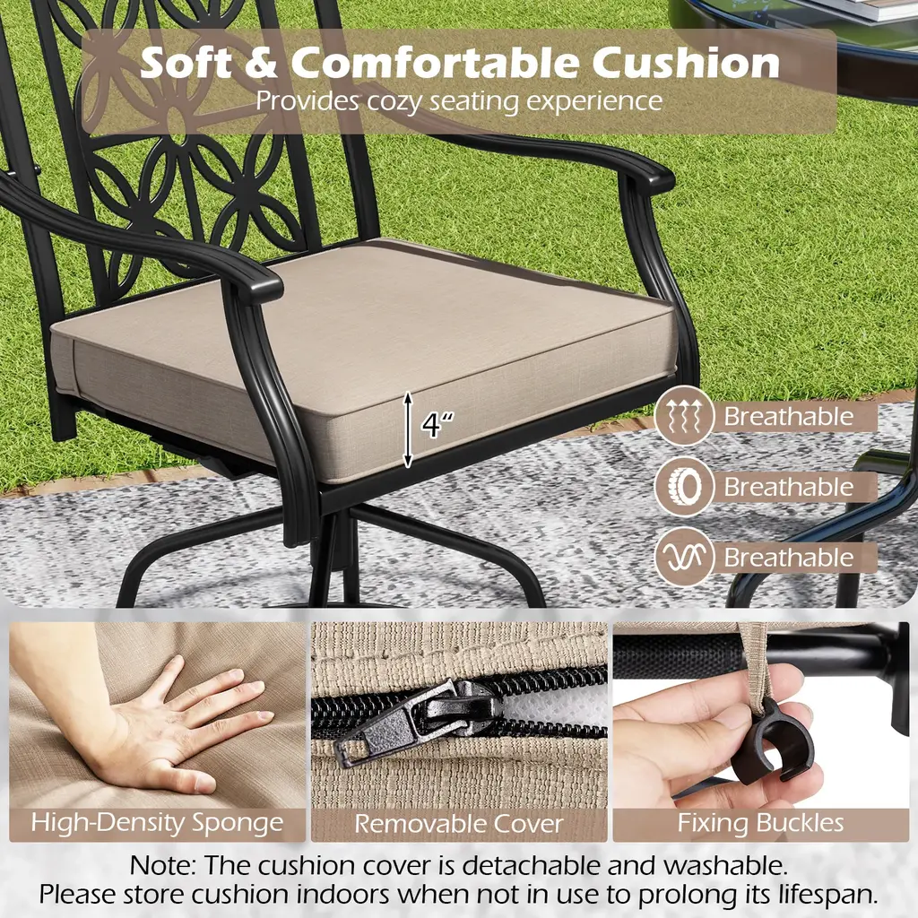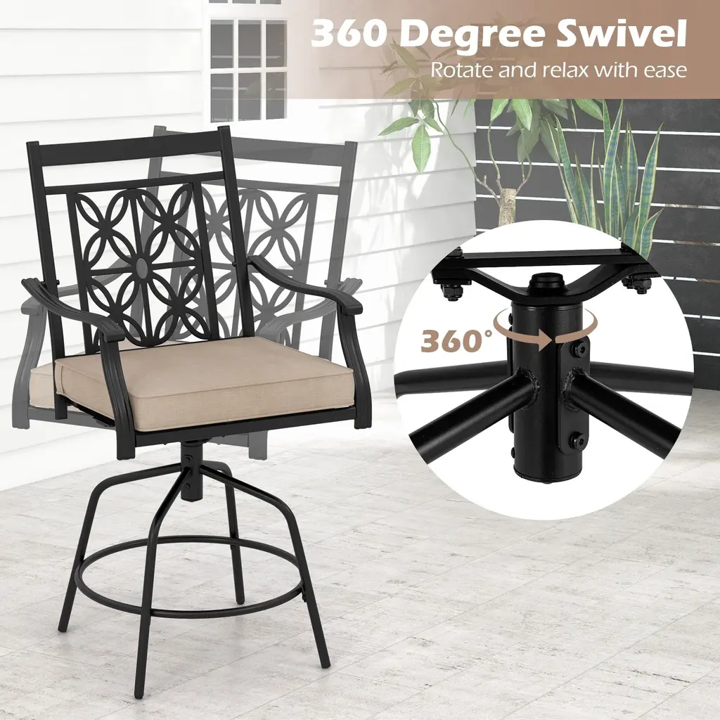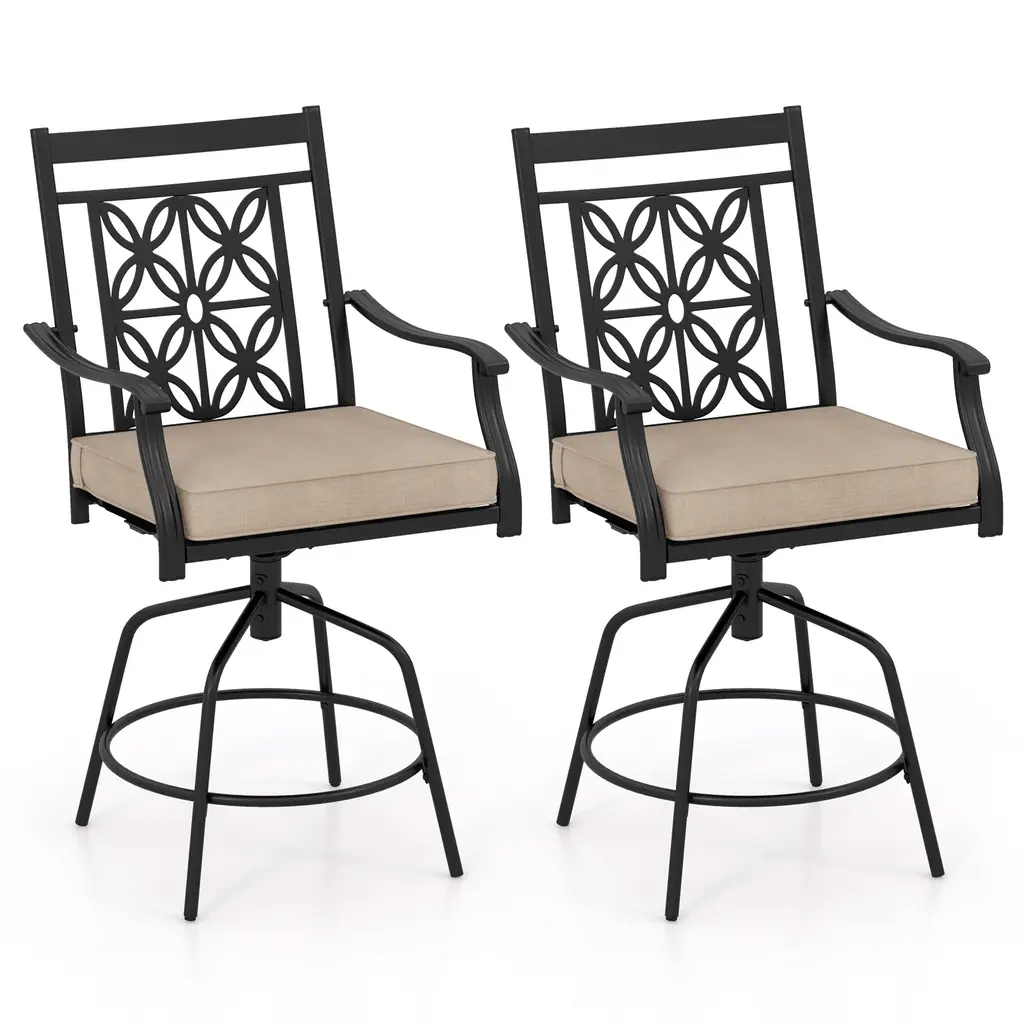 Set Of 2 Outdoor Swivel Bar Stools With Cushioned Seats For Patio Or Deck - 24" X 28" X 44.5" (L X W X H) - Brown-Black