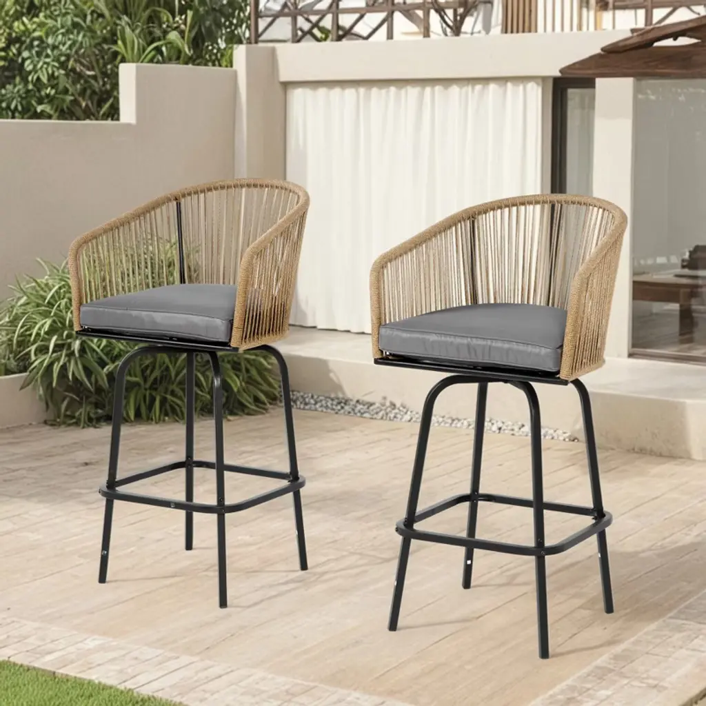 Set Of 2 Woven Wicker Swivel Bar Stools, Patio Bar Height Chair For Backyard, Pool, Garden, Deck W/ 360 Rotation, 250lb Capacity, Gray