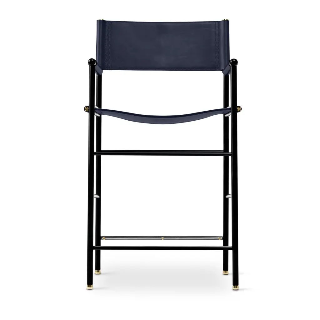 The “Repose” contemporary stool belongs to a collection that revisit the director chair collection, serene pieces where exclusivity and precision are shown in small details such as the hand-turned metal nuts and bolts that fix the leather surfaces, that go unnoticed at first sight.The robustness of the steel structure is combined with the delicacy of the rounded structure. The matte metal finishes evoke the passage of time and are complemented by vegetable tanned cowhide leathers that age gracefully with its use.The “Repose” armchair is designed and conceived as a tribute to director’s chair or luxury safari foldable furniture. All pieces are done with cold steel rods, machined on a turning lathe, black powder coated and lacquered with a matt rubber effect. Our signature screws are made with brass turning lathed, polished, and lacquered, these are the pieces that fix the saddle leather to the metal frame.Leathers are Spanish hides vegetable tanned. We use premium saddles in five colors to adjust to your taste and interior needs. This traditional vegetable dyeing and tanning method is an organic technique that relies on natural tannings from bark or plant tissues. The use of oils and natural fats give the leather a distinctive flexibility and texture, allowing it to be molded, retain its shape and age graciously.All skins are carefully selected from food industry sub-products, with a minimum thickness of 3.5 mm / 0,02 in, using the part of the animal's shoulder, which allows for larger pieces and uniformity, even though signature wrinkle from the animal’s neck may be recognizable. The vegetable tanning is a traditional and artisan treatment, which is respectful to the environment. Even with careful selection natural marks as a result of the contact with other animals, the age, origin and characteristics of the skin, or even the season in which the tanning takes place cannot be avoided. We still believe that these factors only add authenticity and uniqueness to every piece. Our leather parts are made with double saddles, always showing the top side of the hides that presents the better quality.Customization options.With the aim of creating customized pieces, clients can select from the various leather colors to create pieces that complement their home décor. Leather colors available, black, navy, dark brown, cognac and natural tobacco, and steel color is black.Normally we use off white threats for stitches, but client can select another option, being possible to select any color to make a unique piece for the project it belongs. The finish on the edges of our leather components is sanded and hand painted. We have the option to select an alternative color if not tone on tone will be applied.Please consult in case you are interested on having a particular heat embossing stamp on the leather.Our high-end collections are made to full fill home spaces where to gather and enjoy great conversation with families and friends. Occasional one-of-a-kind furniture for exquisite homes, from cottages to exclusive resorts. Our product is understood as a sculptural piece of design, as an art object to be displayed at different house spaces as library, bar, living, foyer, bedroom, powder, meeting, grand or great room.The different finishes options make the furniture perfect combinations on diverse styles, from rustic mountain home, a small cottage, a ski lodge retreat, or industrial a minimalist look. Experience the epitome of industrial design and elevate your home decor with our exquisite 'Repose' contemporary bar stool collection. Crafted with meticulous attention to detail, these bar stools are a harmonious blend of form and function.With their sleek steel structure and luxurious leather surfaces, our bar stools embody the essence of industrial chic. The matte metal finishes exude rustic charm, while the supple vegetable-tanned cowhide leathers age gracefully over time, adding a touch of character to your space.Our bar stools are designed to enhance both style and comfort, making them a perfect addition to any modern home or commercial setting. From kitchen islands to home bars, these stools will elevate your space with their sophisticated aesthetic and ergonomic design.Choose from a range of customizable options, including leather color and finish, to create a bar stool that perfectly complements your interior. Whether you prefer a minimalist look or a rustic ambiance, our 'Repose' collection offers versatility to suit any decor style.Upgrade your home decor and indulge in the allure of industrial design with our 'Repose' contemporary bar stools. With their impeccable craftsmanship and timeless appeal, these stools are sure to impress both guests and design enthusiasts alike.