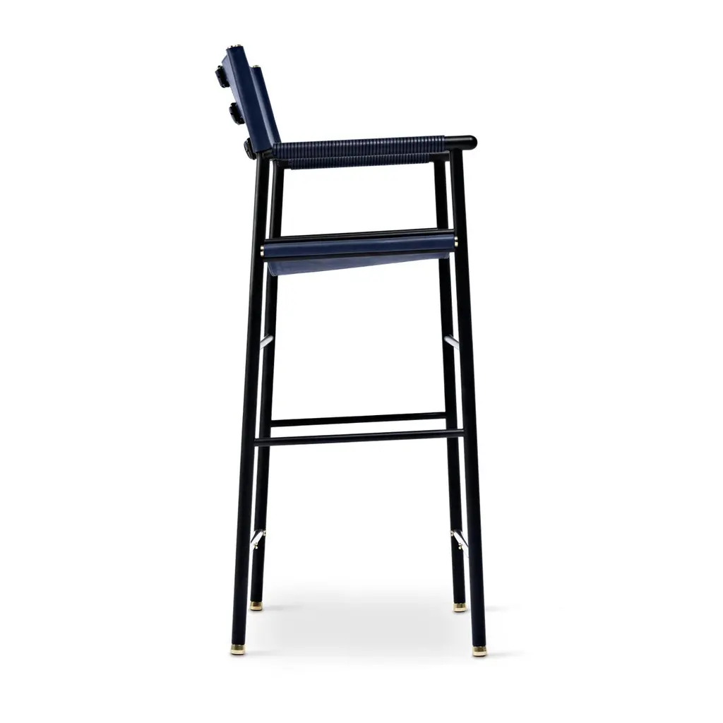 The “Repose” contemporary stool belongs to a collection that revisit the director chair collection, serene pieces where exclusivity and precision are shown in small details such as the hand-turned metal nuts and bolts that fix the leather surfaces, that go unnoticed at first sight.The robustness of the steel structure is combined with the delicacy of the rounded structure. The matte metal finishes evoke the passage of time and are complemented by vegetable tanned cowhide leathers that age gracefully with its use.The “Repose” armchair is designed and conceived as a tribute to director’s chair or luxury safari foldable furniture. All pieces are done with cold steel rods, machined on a turning lathe, black powder coated and lacquered with a matt rubber effect. Our signature screws are made with brass turning lathed, polished, and lacquered, these are the pieces that fix the saddle leather to the metal frame.Leathers are Spanish hides vegetable tanned. We use premium saddles in five colors to adjust to your taste and interior needs. This traditional vegetable dyeing and tanning method is an organic technique that relies on natural tannings from bark or plant tissues. The use of oils and natural fats give the leather a distinctive flexibility and texture, allowing it to be molded, retain its shape and age graciously.All skins are carefully selected from food industry sub-products, with a minimum thickness of 3.5 mm / 0,02 in, using the part of the animal's shoulder, which allows for larger pieces and uniformity, even though signature wrinkle from the animal’s neck may be recognizable. The vegetable tanning is a traditional and artisan treatment, which is respectful to the environment. Even with careful selection natural marks as a result of the contact with other animals, the age, origin and characteristics of the skin, or even the season in which the tanning takes place cannot be avoided. We still believe that these factors only add authenticity and uniqueness to every piece. Our leather parts are made with double saddles, always showing the top side of the hides that presents the better quality.Customization options.With the aim of creating customized pieces, clients can select from the various leather colors to create pieces that complement their home décor. Leather colors available, black, navy, dark brown, cognac and natural tobacco, and steel color is black.Normally we use off white threats for stitches, but client can select another option, being possible to select any color to make a unique piece for the project it belongs. The finish on the edges of our leather components is sanded and hand painted. We have the option to select an alternative color if not tone on tone will be applied.Please consult in case you are interested on having a particular heat embossing stamp on the leather.Our high-end collections are made to full fill home spaces where to gather and enjoy great conversation with families and friends. Occasional one-of-a-kind furniture for exquisite homes, from cottages to exclusive resorts. Our product is understood as a sculptural piece of design, as an art object to be displayed at different house spaces as library, bar, living, foyer, bedroom, powder, meeting, grand or great room.The different finishes options make the furniture perfect combinations on diverse styles, from rustic mountain home, a small cottage, a ski lodge retreat, or industrial a minimalist look. Experience the epitome of industrial design and elevate your home decor with our exquisite 'Repose' contemporary bar stool collection. Crafted with meticulous attention to detail, these bar stools are a harmonious blend of form and function.With their sleek steel structure and luxurious leather surfaces, our bar stools embody the essence of industrial chic. The matte metal finishes exude rustic charm, while the supple vegetable-tanned cowhide leathers age gracefully over time, adding a touch of character to your space.Our bar stools are designed to enhance both style and comfort, making them a perfect addition to any modern home or commercial setting. From kitchen islands to home bars, these stools will elevate your space with their sophisticated aesthetic and ergonomic design.Choose from a range of customizable options, including leather color and finish, to create a bar stool that perfectly complements your interior. Whether you prefer a minimalist look or a rustic ambiance, our 'Repose' collection offers versatility to suit any decor style.Upgrade your home decor and indulge in the allure of industrial design with our 'Repose' contemporary bar stools. With their impeccable craftsmanship and timeless appeal, these stools are sure to impress both guests and design enthusiasts alike.