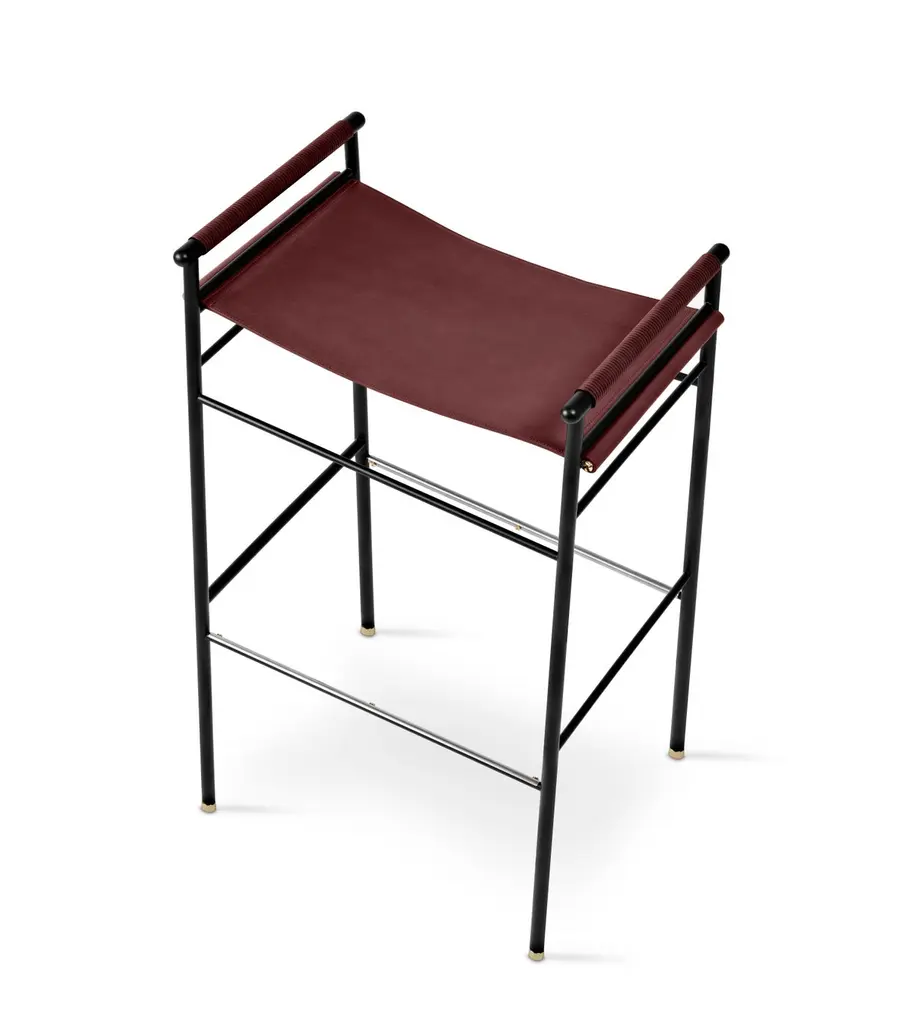 The “Repose” contemporary counter stool belongs to a collection that revisit the director chair collection, serene pieces where exclusivity and precision are shown in small details such as the hand-turned metal nuts and bolts that fix the leather surfaces, that go unnoticed at first sight.The robustness of the steel structure is combined with the delicacy of the rounded structure. The matte metal finishes evoke the passage of time and are complemented by vegetable tanned cowhide leathers that age gracefully with its use.The “Repose” collection is designed and conceived as a tribute to director’s chair or luxury safari foldable furniture. All pieces are done with cold steel rods, machined on a turning lathe, black powder coated and lacquered with a matt rubber effect. Our signature screws are made with brass turning lathed, polished, and lacquered, these are the pieces that fix the saddle leather to the metal frame.Leathers are Spanish hides vegetable tanned. We use premium saddles in five colors to adjust to your taste and interior needs. This traditional vegetable dyeing and tanning method is an organic technique that relies on natural tannings from bark or plant tissues. The use of oils and natural fats give the leather a distinctive flexibility and texture, allowing it to be molded, retain its shape and age graciously.All skins are carefully selected from food industry sub-products, with a minimum thickness of 3.5 mm / 0,02 in, using the part of the animal's shoulder, which allows for larger pieces and uniformity, even though signature wrinkle from the animal’s neck may be recognizable. The vegetable tanning is a traditional and artisan treatment, which is respectful to the environment. Even with careful selection natural marks as a result of the contact with other animals, the age, origin and characteristics of the skin, or even the season in which the tanning takes place cannot be avoided. We still believe that these factors only add authenticity and uniqueness to every piece. Our leather parts are made with double saddles, always showing the top side of the hides that presents the better quality.Customization options.With the aim of creating customized pieces, clients can select from the various leather colors to create pieces that complement their home décor. Leather colors available, black, navy, dark brown, cognac and natural tobacco, and steel color is black.Normally we use off white threats for stitches, but client can select another option, being possible to select any color to make a unique piece for the project it belongs. The finish on the edges of our leather components is sanded and hand painted. We have the option to select an alternative color if not tone on tone will be applied.Please consult in case you are interested on having a particular heat embossing stamp on the leather.Our high-end collections are made to full fill home spaces where to gather and enjoy great conversation with families and friends. Occasional one-of-a-kind furniture for exquisite homes, from cottages to exclusive resorts. Our product is understood as a sculptural piece of design, as an art object to be displayed at different house spaces as library, bar, living, foyer, bedroom, powder, meeting, grand or great room.The different finishes options make the furniture perfect combinations on diverse styles, from rustic mountain home, a small cottage, a ski lodge retreat, or industrial a minimalist look. The 'Repose' contemporary armchair is a part of our exclusive collection that reimagines the classic director chair with a serene and exquisite design. Every detail is carefully crafted, from the hand-turned metal nuts and bolts that secure the leather surfaces, to the robust yet delicate combination of steel and rounded structure. The matte metal finishes evoke a timeless appeal, complemented by vegetable-tanned cowhide leathers that age gracefully over time.Designed as a tribute to director's chairs and luxury safari foldable furniture, the 'Repose' armchair is meticulously constructed using cold steel rods, machined on a turning lathe, and finished with a black powder coating and a matt rubber effect. Our signature brass screws not only add elegance but also securely fix the saddle leather to the metal frame.We use premium Spanish hides that undergo vegetable tanning, a traditional and environmentally-friendly technique relying on natural tannings from bark or plant tissues. The use of oils and natural fats gives the leather a distinctive flexibility, texture, and longevity, allowing it to mold, retain its shape, and age gracefully. Each skin is carefully selected from food industry sub-products, ensuring a minimum thickness of 3.5 mm / 0.02 in. While some natural marks and wrinkles from the animal's neck may be noticeable, we believe they enhance the authenticity and uniqueness of every piece.Our leather parts are made with double saddles, always showcasing the top side of the hides for superior quality. We offer customization options to suit individual preferences and home décor, with a range of leather colors including black, navy, dark brown, cognac, and natural tobacco. The steel color is black, seamlessly blending with various interior styles.For stitching, we typically use off-white threads, but clients have the flexibility to select alternative colors, making each piece truly unique. The edges of our leather components are meticulously sanded and hand-painted, providing a refined finish. Additionally, we offer the option to choose an alternative color for a striking contrast if a tone-on-tone effect is not preferred.If you desire a personal touch, we offer the possibility of incorporating a particular heat embossing stamp on the leather. Our high-end collections are designed to create a gathering space for families and friends, offering one-of-a-kind furniture for exquisite homes, ranging from cottages to exclusive resorts. Each piece is a sculptural work of art, perfect for 