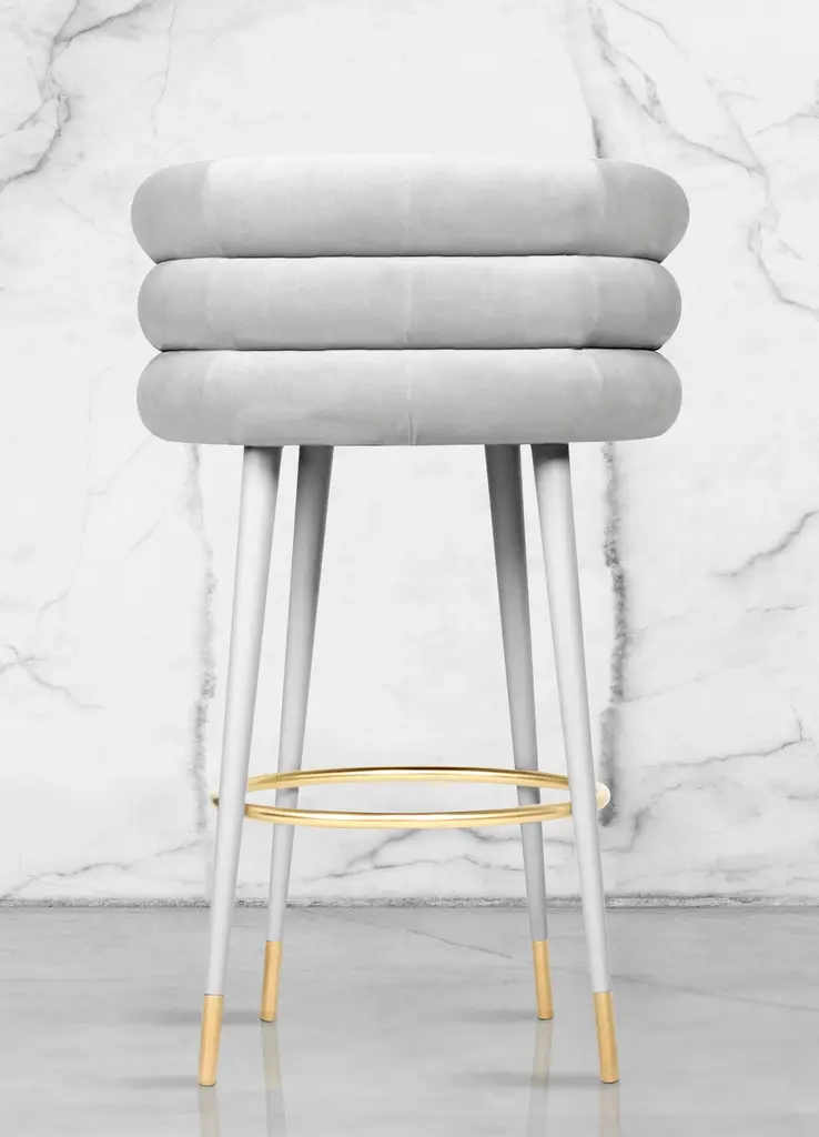Set of 4 marshmallow bar stools, Royal Stranger.Dimensions: 100 x 70 x 60 cm.Materials: Velvet upholstery, brassAvailable in: Mint green, light pink, Royal green and Royal redRoyal stranger is an exclusive furniture brand determined to bring you the best unique pieces of art and design.Fusing design, art and the best craftsmanship, they strive to deliver the best state of the handmade art furniture. The design team works every day to create meaningful products that represent values such as passion, function, aesthetics and know-how. Values that are meant to represent Royal stranger’s DNA. This dedication is present at all stages of production and the combination of craftsmanship and innovative design contributes toour final purpose: to produce certified high-quality products, made with passion and expertise and using royal materials such as gold leaf, rich woods and high quality lacquers.It was in 2013, as an architects, that Sofia Santos & Rui Santos started to push the boundaries of innovation in several retail design concepts for some of the best stores in Portugal. This will has always been present in their work, and that’s how the brand was born.