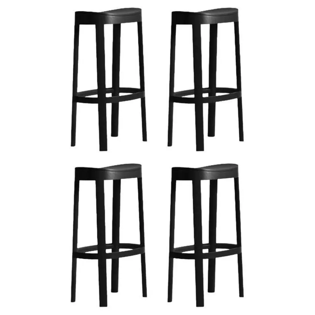 Set Of 4 Ml 42 Black Beech And Stainless Steel Bar Stools By Lassen