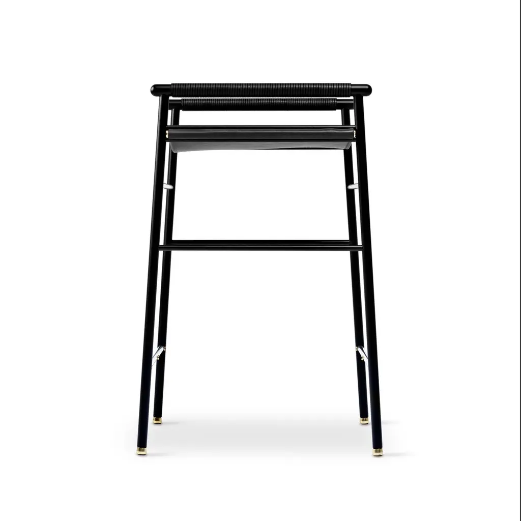 The “Repose” contemporary counter stool belongs to a collection that revisit the director chair collection, serene pieces where exclusivity and precision are shown in small details such as the hand-turned metal nuts and bolts that fix the leather surfaces, that go unnoticed at first sight.The robustness of the steel structure is combined with the delicacy of the rounded structure. The matte metal finishes evoke the passage of time and are complemented by vegetable tanned cowhide leathers that age gracefully with its use.The “Repose” collection is designed and conceived as a tribute to director’s chair or luxury safari foldable furniture. All pieces are done with cold steel rods, machined on a turning lathe, black powder coated and lacquered with a matt rubber effect. Our signature screws are made with brass turning lathed, polished, and lacquered, these are the pieces that fix the saddle leather to the metal frame.Leathers are Spanish hides vegetable tanned. We use premium saddles in five colors to adjust to your taste and interior needs. This traditional vegetable dyeing and tanning method is an organic technique that relies on natural tannings from bark or plant tissues. The use of oils and natural fats give the leather a distinctive flexibility and texture, allowing it to be molded, retain its shape and age graciously.All skins are carefully selected from food industry sub-products, with a minimum thickness of 3.5 mm / 0,02 in, using the part of the animal's shoulder, which allows for larger pieces and uniformity, even though signature wrinkle from the animal’s neck may be recognizable. The vegetable tanning is a traditional and artisan treatment, which is respectful to the environment. Even with careful selection natural marks as a result of the contact with other animals, the age, origin and characteristics of the skin, or even the season in which the tanning takes place cannot be avoided. We still believe that these factors only add authenticity and uniqueness to every piece. Our leather parts are made with double saddles, always showing the top side of the hides that presents the better quality.Customization options.With the aim of creating customized pieces, clients can select from the various leather colors to create pieces that complement their home décor. Leather colors available, black, navy, dark brown, cognac and natural tobacco, and steel color is black.Normally we use off white threats for stitches, but client can select another option, being possible to select any color to make a unique piece for the project it belongs. The finish on the edges of our leather components is sanded and hand painted. We have the option to select an alternative color if not tone on tone will be applied.Please consult in case you are interested on having a particular heat embossing stamp on the leather.Our high-end collections are made to full fill home spaces where to gather and enjoy great conversation with families and friends. Occasional one-of-a-kind furniture for exquisite homes, from cottages to exclusive resorts. Our product is understood as a sculptural piece of design, as an art object to be displayed at different house spaces as library, bar, living, foyer, bedroom, powder, meeting, grand or great room.The different finishes options make the furniture perfect combinations on diverse styles, from rustic mountain home, a small cottage, a ski lodge retreat, or industrial a minimalist look. The 'Repose' contemporary armchair is a part of our exclusive collection that reimagines the classic director chair with a serene and exquisite design. Every detail is carefully crafted, from the hand-turned metal nuts and bolts that secure the leather surfaces, to the robust yet delicate combination of steel and rounded structure. The matte metal finishes evoke a timeless appeal, complemented by vegetable-tanned cowhide leathers that age gracefully over time.Designed as a tribute to director's chairs and luxury safari foldable furniture, the 'Repose' armchair is meticulously constructed using cold steel rods, machined on a turning lathe, and finished with a black powder coating and a matt rubber effect. Our signature brass screws not only add elegance but also securely fix the saddle leather to the metal frame.We use premium Spanish hides that undergo vegetable tanning, a traditional and environmentally-friendly technique relying on natural tannings from bark or plant tissues. The use of oils and natural fats gives the leather a distinctive flexibility, texture, and longevity, allowing it to mold, retain its shape, and age gracefully. Each skin is carefully selected from food industry sub-products, ensuring a minimum thickness of 3.5 mm / 0.02 in. While some natural marks and wrinkles from the animal's neck may be noticeable, we believe they enhance the authenticity and uniqueness of every piece.Our leather parts are made with double saddles, always showcasing the top side of the hides for superior quality. We offer customization options to suit individual preferences and home décor, with a range of leather colors including black, navy, dark brown, cognac, and natural tobacco. The steel color is black, seamlessly blending with various interior styles.For stitching, we typically use off-white threads, but clients have the flexibility to select alternative colors, making each piece truly unique. The edges of our leather components are meticulously sanded and hand-painted, providing a refined finish. Additionally, we offer the option to choose an alternative color for a striking contrast if a tone-on-tone effect is not preferred.If you desire a personal touch, we offer the possibility of incorporating a particular heat embossing stamp on the leather. Our high-end collections are designed to create a gathering space for families and friends, offering one-of-a-kind furniture for exquisite homes, ranging from cottages to exclusive resorts. Each piece is a sculptural work of art, perfect for 