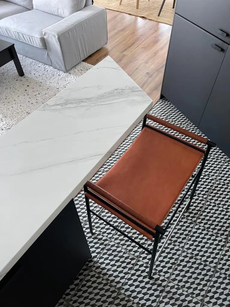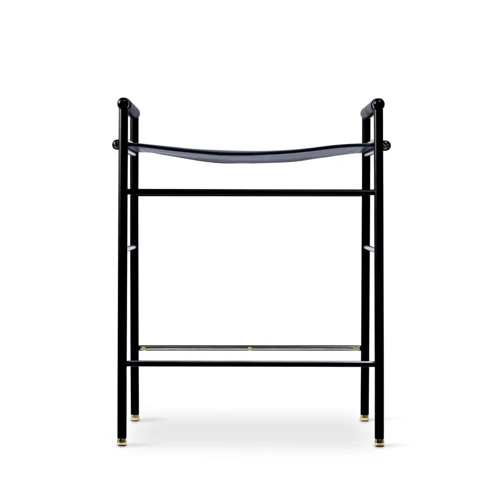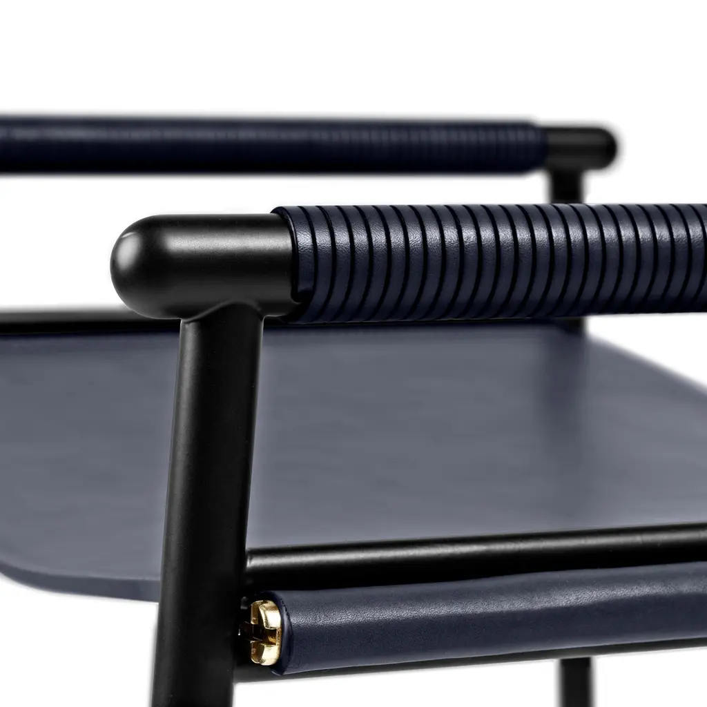 The “Repose” contemporary counter stool belongs to a collection that revisit the director chair collection, serene pieces where exclusivity and precision are shown in small details such as the hand-turned metal nuts and bolts that fix the leather surfaces, that go unnoticed at first sight.The robustness of the steel structure is combined with the delicacy of the rounded structure. The matte metal finishes evoke the passage of time and are complemented by vegetable tanned cowhide leathers that age gracefully with its use.The “Repose” collection is designed and conceived as a tribute to director’s chair or luxury safari foldable furniture. All pieces are done with cold steel rods, machined on a turning lathe, black powder coated and lacquered with a matt rubber effect. Our signature screws are made with brass turning lathed, polished, and lacquered, these are the pieces that fix the saddle leather to the metal frame.Leathers are Spanish hides vegetable tanned. We use premium saddles in five colors to adjust to your taste and interior needs. This traditional vegetable dyeing and tanning method is an organic technique that relies on natural tannings from bark or plant tissues. The use of oils and natural fats give the leather a distinctive flexibility and texture, allowing it to be molded, retain its shape and age graciously.All skins are carefully selected from food industry sub-products, with a minimum thickness of 3.5 mm / 0,02 in, using the part of the animal's shoulder, which allows for larger pieces and uniformity, even though signature wrinkle from the animal’s neck may be recognizable. The vegetable tanning is a traditional and artisan treatment, which is respectful to the environment. Even with careful selection natural marks as a result of the contact with other animals, the age, origin and characteristics of the skin, or even the season in which the tanning takes place cannot be avoided. We still believe that these factors only add authenticity and uniqueness to every piece. Our leather parts are made with double saddles, always showing the top side of the hides that presents the better quality.Customization options.With the aim of creating customized pieces, clients can select from the various leather colors to create pieces that complement their home décor. Leather colors available, black, navy, dark brown, cognac and natural tobacco, and steel color is black.Normally we use off white threats for stitches, but client can select another option, being possible to select any color to make a unique piece for the project it belongs. The finish on the edges of our leather components is sanded and hand painted. We have the option to select an alternative color if not tone on tone will be applied.Please consult in case you are interested on having a particular heat embossing stamp on the leather.Our high-end collections are made to full fill home spaces where to gather and enjoy great conversation with families and friends. Occasional one-of-a-kind furniture for exquisite homes, from cottages to exclusive resorts. Our product is understood as a sculptural piece of design, as an art object to be displayed at different house spaces as library, bar, living, foyer, bedroom, powder, meeting, grand or great room.The different finishes options make the furniture perfect combinations on diverse styles, from rustic mountain home, a small cottage, a ski lodge retreat, or industrial a minimalist look. The 'Repose' contemporary armchair is a part of our exclusive collection that reimagines the classic director chair with a serene and exquisite design. Every detail is carefully crafted, from the hand-turned metal nuts and bolts that secure the leather surfaces, to the robust yet delicate combination of steel and rounded structure. The matte metal finishes evoke a timeless appeal, complemented by vegetable-tanned cowhide leathers that age gracefully over time.Designed as a tribute to director's chairs and luxury safari foldable furniture, the 'Repose' armchair is meticulously constructed using cold steel rods, machined on a turning lathe, and finished with a black powder coating and a matt rubber effect. Our signature brass screws not only add elegance but also securely fix the saddle leather to the metal frame.We use premium Spanish hides that undergo vegetable tanning, a traditional and environmentally-friendly technique relying on natural tannings from bark or plant tissues. The use of oils and natural fats gives the leather a distinctive flexibility, texture, and longevity, allowing it to mold, retain its shape, and age gracefully. Each skin is carefully selected from food industry sub-products, ensuring a minimum thickness of 3.5 mm / 0.02 in. While some natural marks and wrinkles from the animal's neck may be noticeable, we believe they enhance the authenticity and uniqueness of every piece.Our leather parts are made with double saddles, always showcasing the top side of the hides for superior quality. We offer customization options to suit individual preferences and home décor, with a range of leather colors including black, navy, dark brown, cognac, and natural tobacco. The steel color is black, seamlessly blending with various interior styles.For stitching, we typically use off-white threads, but clients have the flexibility to select alternative colors, making each piece truly unique. The edges of our leather components are meticulously sanded and hand-painted, providing a refined finish. Additionally, we offer the option to choose an alternative color for a striking contrast if a tone-on-tone effect is not preferred.If you desire a personal touch, we offer the possibility of incorporating a particular heat embossing stamp on the leather. Our high-end collections are designed to create a gathering space for families and friends, offering one-of-a-kind furniture for exquisite homes, ranging from cottages to exclusive resorts. Each piece is a sculptural work of art, perfect for 