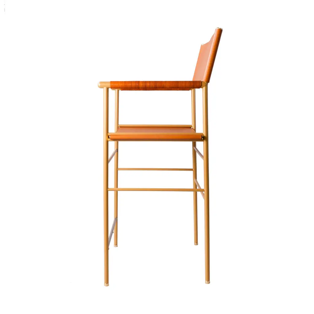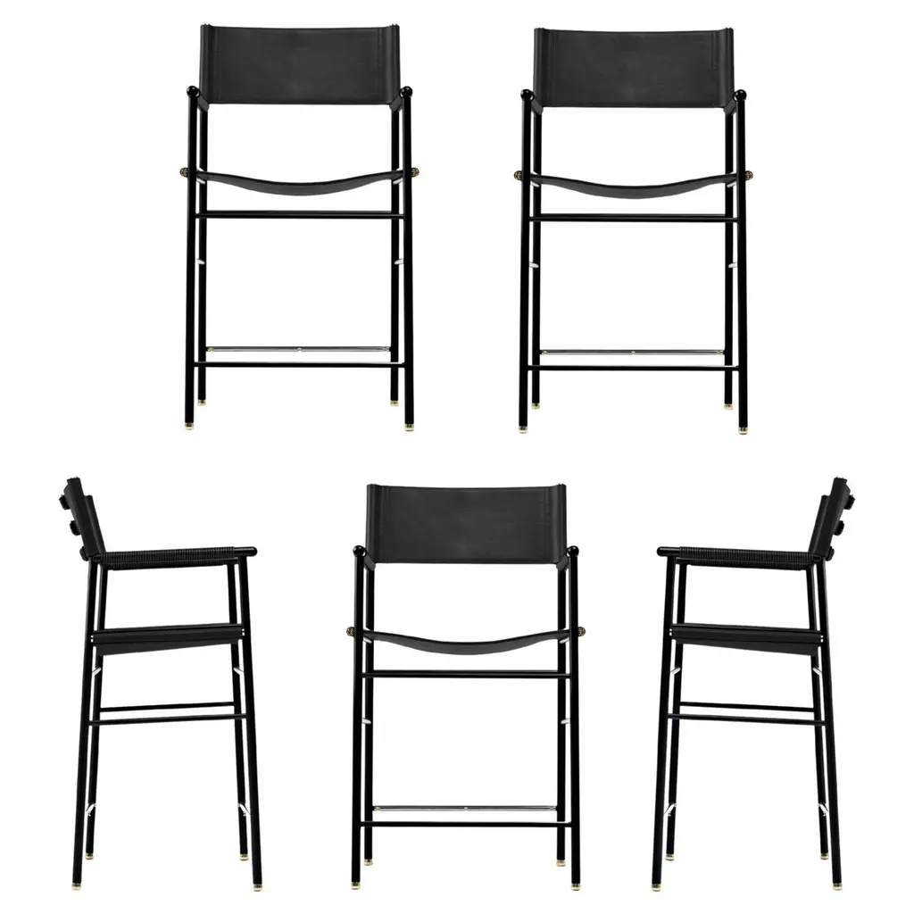 The “Repose” contemporary stool belongs to a collection that revisit the director chair collection, serene pieces where exclusivity and precision are shown in small details such as the hand-turned metal nuts and bolts that fix the leather surfaces, that go unnoticed at first sight.The robustness of the steel structure is combined with the delicacy of the rounded structure. The matte metal finishes evoke the passage of time and are complemented by vegetable tanned cowhide leathers that age gracefully with its use.The “Repose” armchair is designed and conceived as a tribute to director’s chair or luxury safari foldable furniture. All pieces are done with cold steel rods, machined on a turning lathe, black powder coated and lacquered with a matt rubber effect. Our signature screws are made with brass turning lathed, polished, and lacquered, these are the pieces that fix the saddle leather to the metal frame.Leathers are Spanish hides vegetable tanned. We use premium saddles in five colors to adjust to your taste and interior needs. This traditional vegetable dyeing and tanning method is an organic technique that relies on natural tannings from bark or plant tissues. The use of oils and natural fats give the leather a distinctive flexibility and texture, allowing it to be molded, retain its shape and age graciously.All skins are carefully selected from food industry sub-products, with a minimum thickness of 3.5 mm / 0,02 in, using the part of the animal's shoulder, which allows for larger pieces and uniformity, even though signature wrinkle from the animal’s neck may be recognizable. The vegetable tanning is a traditional and artisan treatment, which is respectful to the environment. Even with careful selection natural marks as a result of the contact with other animals, the age, origin and characteristics of the skin, or even the season in which the tanning takes place cannot be avoided. We still believe that these factors only add authenticity and uniqueness to every piece. Our leather parts are made with double saddles, always showing the top side of the hides that presents the better quality.Customization options.With the aim of creating customized pieces, clients can select from the various leather colors to create pieces that complement their home décor. Leather colors available, black, navy, dark brown, cognac and natural tobacco, and steel color is black.Normally we use off white threats for stitches, but client can select another option, being possible to select any color to make a unique piece for the project it belongs. The finish on the edges of our leather components is sanded and hand painted. We have the option to select an alternative color if not tone on tone will be applied.Please consult in case you are interested on having a particular heat embossing stamp on the leather.Our high-end collections are made to full fill home spaces where to gather and enjoy great conversation with families and friends. Occasional one-of-a-kind furniture for exquisite homes, from cottages to exclusive resorts. Our product is understood as a sculptural piece of design, as an art object to be displayed at different house spaces as library, bar, living, foyer, bedroom, powder, meeting, grand or great room.The different finishes options make the furniture perfect combinations on diverse styles, from rustic mountain home, a small cottage, a ski lodge retreat, or industrial a minimalist look. The 'Repose' contemporary armchair is a part of our exclusive collection that reimagines the classic director chair with a serene and exquisite design. Every detail is carefully crafted, from the hand-turned metal nuts and bolts that secure the leather surfaces, to the robust yet delicate combination of steel and rounded structure. The matte metal finishes evoke a timeless appeal, complemented by vegetable-tanned cowhide leathers that age gracefully over time.Designed as a tribute to director's chairs and luxury safari foldable furniture, the 'Repose' armchair is meticulously constructed using cold steel rods, machined on a turning lathe, and finished with a black powder coating and a matt rubber effect. Our signature brass screws not only add elegance but also securely fix the saddle leather to the metal frame.We use premium Spanish hides that undergo vegetable tanning, a traditional and environmentally-friendly technique relying on natural tannings from bark or plant tissues. The use of oils and natural fats gives the leather a distinctive flexibility, texture, and longevity, allowing it to mold, retain its shape, and age gracefully. Each skin is carefully selected from food industry sub-products, ensuring a minimum thickness of 3.5 mm / 0.02 in. While some natural marks and wrinkles from the animal's neck may be noticeable, we believe they enhance the authenticity and uniqueness of every piece.Our leather parts are made with double saddles, always showcasing the top side of the hides for superior quality. We offer customization options to suit individual preferences and home décor, with a range of leather colors including black, navy, dark brown, cognac, and natural tobacco. The steel color is black, seamlessly blending with various interior styles.For stitching, we typically use off-white threads, but clients have the flexibility to select alternative colors, making each piece truly unique. The edges of our leather components are meticulously sanded and hand-painted, providing a refined finish. Additionally, we offer the option to choose an alternative color for a striking contrast if a tone-on-tone effect is not preferred.If you desire a personal touch, we offer the possibility of incorporating a particular heat embossing stamp on the leather. Our high-end collections are designed to create a gathering space for families and friends, offering one-of-a-kind furniture for exquisite homes, ranging from cottages to exclusive resorts. Each piece is a sculptural work of art, perfect for various ho