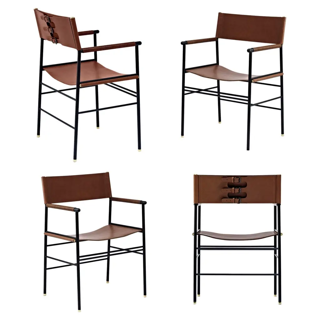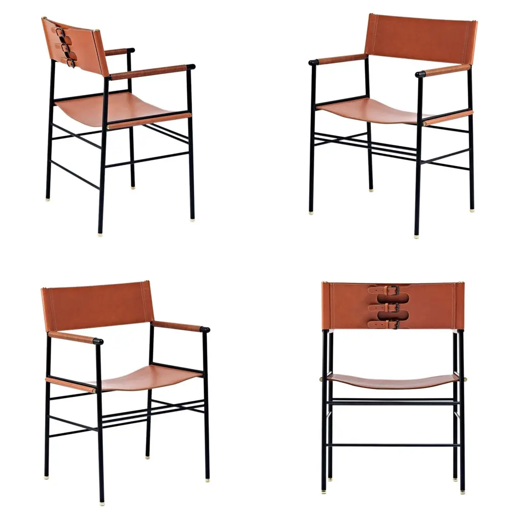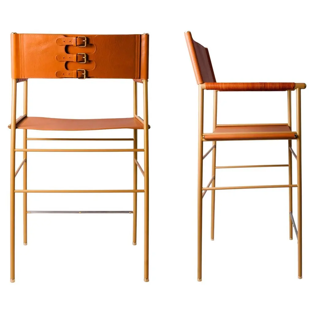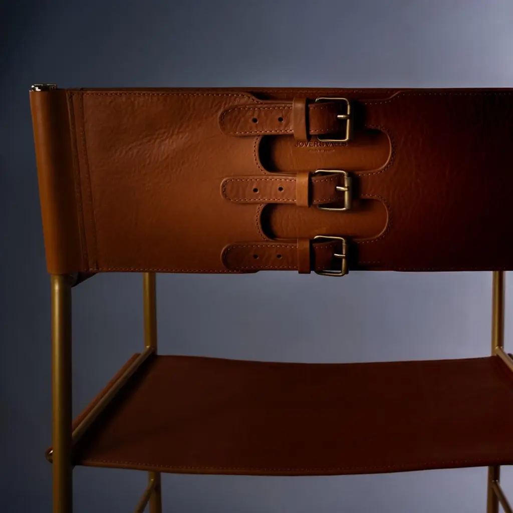 The “Repose” contemporary stool belongs to a collection that revisit the director chair collection, serene pieces where exclusivity and precision are shown in small details such as the hand-turned metal nuts and bolts that fix the leather surfaces, that go unnoticed at first sight.The robustness of the steel structure is combined with the delicacy of the rounded structure. The matte metal finishes evoke the passage of time and are complemented by vegetable tanned cowhide leathers that age gracefully with its use.The “Repose” armchair is designed and conceived as a tribute to director’s chair or luxury safari foldable furniture. All pieces are done with cold steel rods, machined on a turning lathe, black powder coated and lacquered with a matt rubber effect. Our signature screws are made with brass turning lathed, polished, and lacquered, these are the pieces that fix the saddle leather to the metal frame.Leathers are Spanish hides vegetable tanned. We use premium saddles in five colors to adjust to your taste and interior needs. This traditional vegetable dyeing and tanning method is an organic technique that relies on natural tannings from bark or plant tissues. The use of oils and natural fats give the leather a distinctive flexibility and texture, allowing it to be molded, retain its shape and age graciously.All skins are carefully selected from food industry sub-products, with a minimum thickness of 3.5 mm / 0,02 in, using the part of the animal's shoulder, which allows for larger pieces and uniformity, even though signature wrinkle from the animal’s neck may be recognizable. The vegetable tanning is a traditional and artisan treatment, which is respectful to the environment. Even with careful selection natural marks as a result of the contact with other animals, the age, origin and characteristics of the skin, or even the season in which the tanning takes place cannot be avoided. We still believe that these factors only add authenticity and uniqueness to every piece. Our leather parts are made with double saddles, always showing the top side of the hides that presents the better quality.Customization options.With the aim of creating customized pieces, clients can select from the various leather colors to create pieces that complement their home décor. Leather colors available, black, navy, dark brown, cognac and natural tobacco, and steel color is black.Normally we use off white threats for stitches, but client can select another option, being possible to select any color to make a unique piece for the project it belongs. The finish on the edges of our leather components is sanded and hand painted. We have the option to select an alternative color if not tone on tone will be applied.Please consult in case you are interested on having a particular heat embossing stamp on the leather.Our high-end collections are made to full fill home spaces where to gather and enjoy great conversation with families and friends. Occasional one-of-a-kind furniture for exquisite homes, from cottages to exclusive resorts. Our product is understood as a sculptural piece of design, as an art object to be displayed at different house spaces as library, bar, living, foyer, bedroom, powder, meeting, grand or great room.The different finishes options make the furniture perfect combinations on diverse styles, from rustic mountain home, a small cottage, a ski lodge retreat, or industrial a minimalist look. The 'Repose' contemporary armchair is a part of our exclusive collection that reimagines the classic director chair with a serene and exquisite design. Every detail is carefully crafted, from the hand-turned metal nuts and bolts that secure the leather surfaces, to the robust yet delicate combination of steel and rounded structure. The matte metal finishes evoke a timeless appeal, complemented by vegetable-tanned cowhide leathers that age gracefully over time.Designed as a tribute to director's chairs and luxury safari foldable furniture, the 'Repose' armchair is meticulously constructed using cold steel rods, machined on a turning lathe, and finished with a black powder coating and a matt rubber effect. Our signature brass screws not only add elegance but also securely fix the saddle leather to the metal frame.We use premium Spanish hides that undergo vegetable tanning, a traditional and environmentally-friendly technique relying on natural tannings from bark or plant tissues. The use of oils and natural fats gives the leather a distinctive flexibility, texture, and longevity, allowing it to mold, retain its shape, and age gracefully. Each skin is carefully selected from food industry sub-products, ensuring a minimum thickness of 3.5 mm / 0.02 in. While some natural marks and wrinkles from the animal's neck may be noticeable, we believe they enhance the authenticity and uniqueness of every piece.Our leather parts are made with double saddles, always showcasing the top side of the hides for superior quality. We offer customization options to suit individual preferences and home décor, with a range of leather colors including black, navy, dark brown, cognac, and natural tobacco. The steel color is black, seamlessly blending with various interior styles.For stitching, we typically use off-white threads, but clients have the flexibility to select alternative colors, making each piece truly unique. The edges of our leather components are meticulously sanded and hand-painted, providing a refined finish. Additionally, we offer the option to choose an alternative color for a striking contrast if a tone-on-tone effect is not preferred.If you desire a personal touch, we offer the possibility of incorporating a particular heat embossing stamp on the leather. Our high-end collections are designed to create a gathering space for families and friends, offering one-of-a-kind furniture for exquisite homes, ranging from cottages to exclusive resorts. Each piece is a sculptural work of art, perfect for various ho