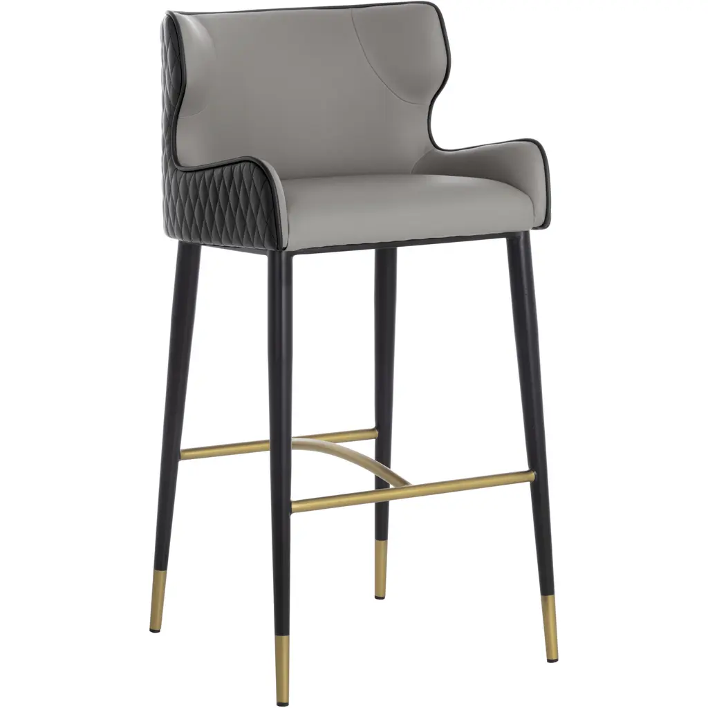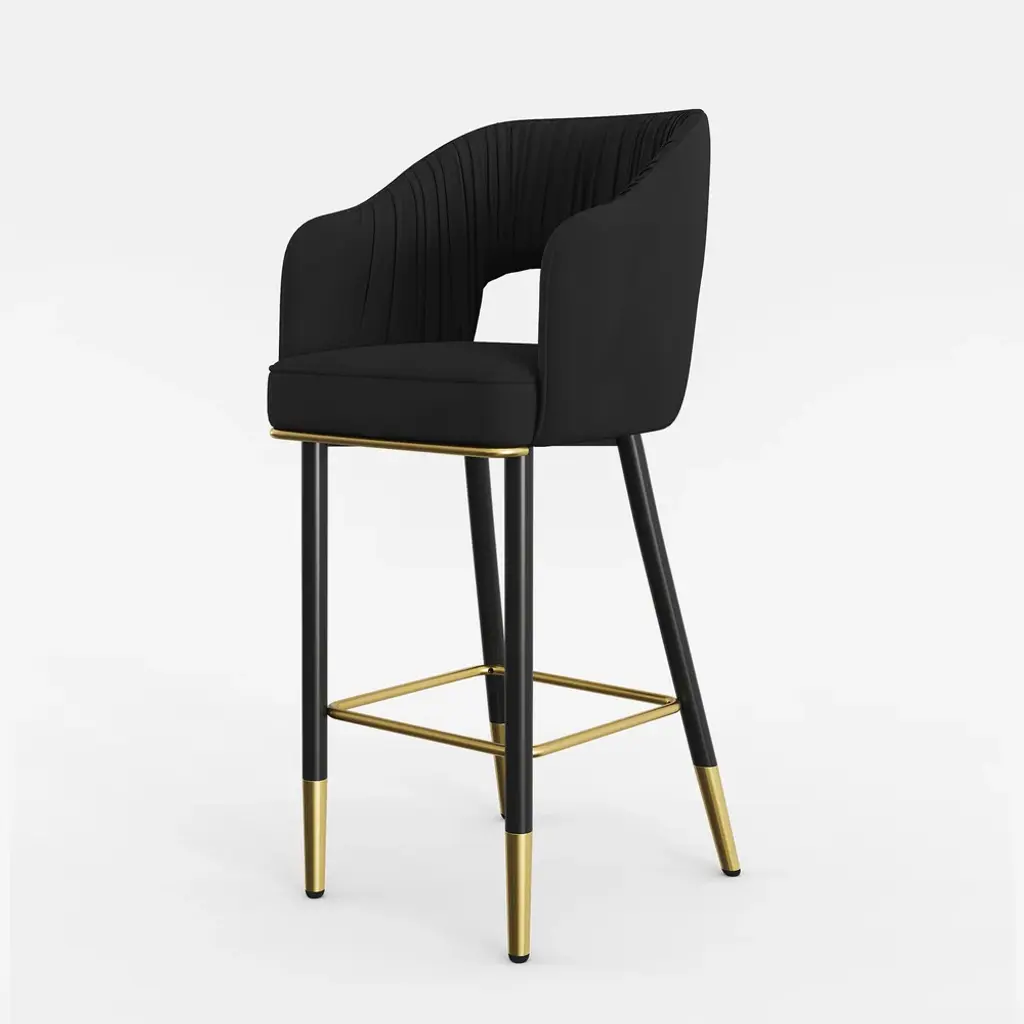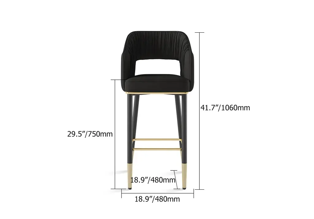 Add luxury to your kitchen or bar with this modern black velvet bar stool in its low-back design and square seat providing ergonomic support with plush comfort. The sleek black and gold metal legs give it a striking look. It features a convenient footrest and armrests for long conversations or casual dining. This velvet-upholstered stool, soft but highly durable, is filled with high-density foam and is designed to add both fashion and functionality to your home.