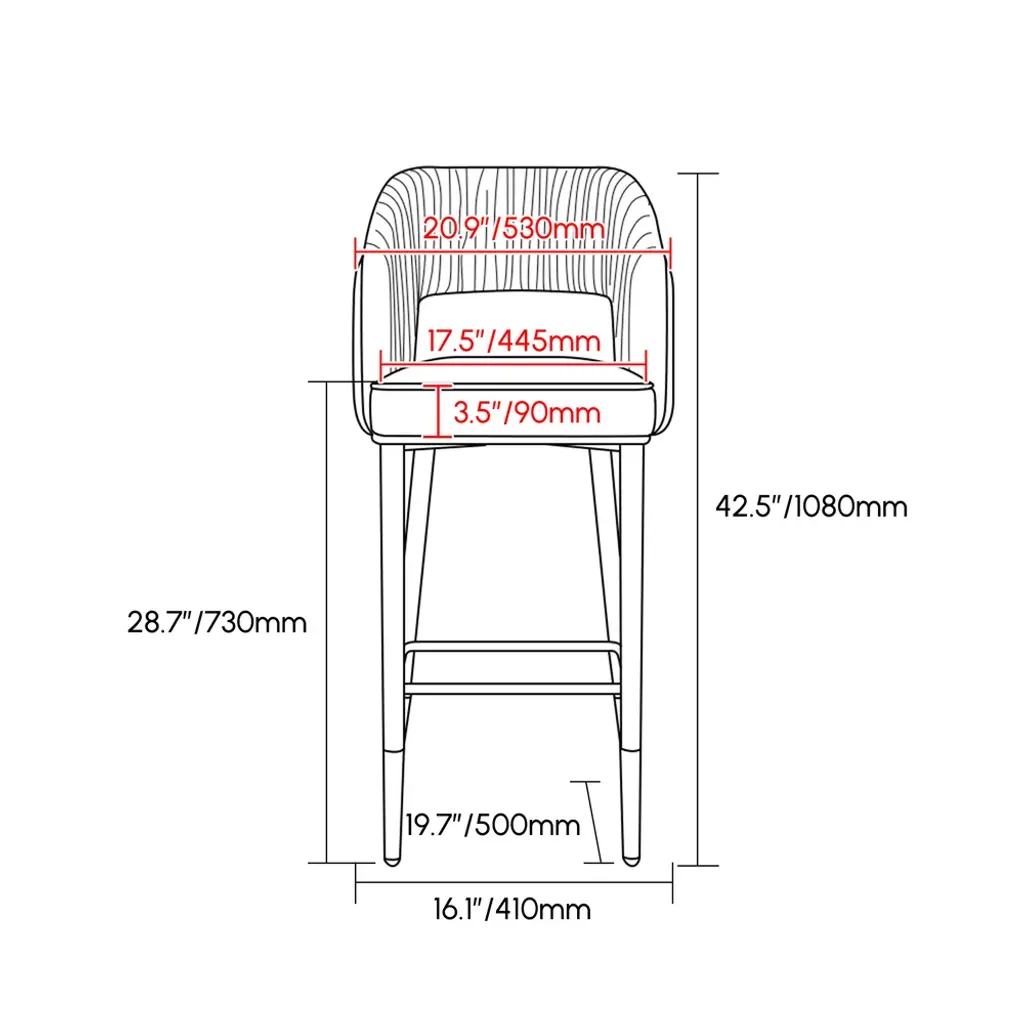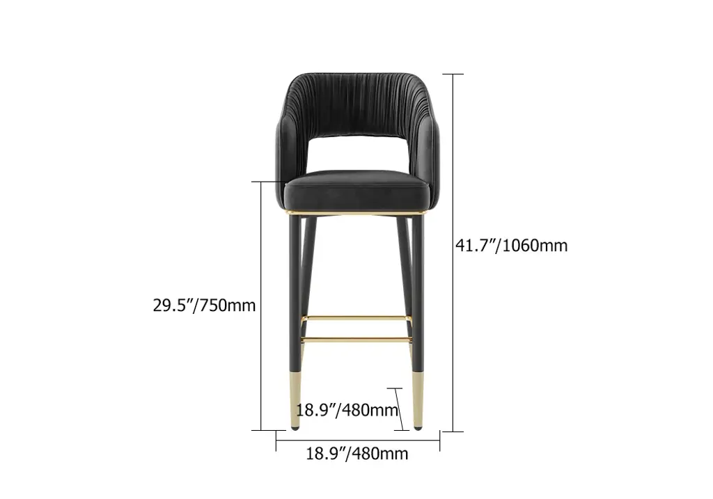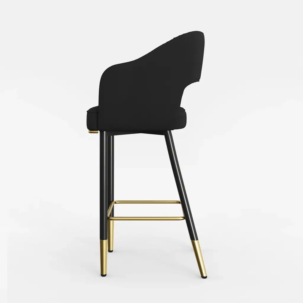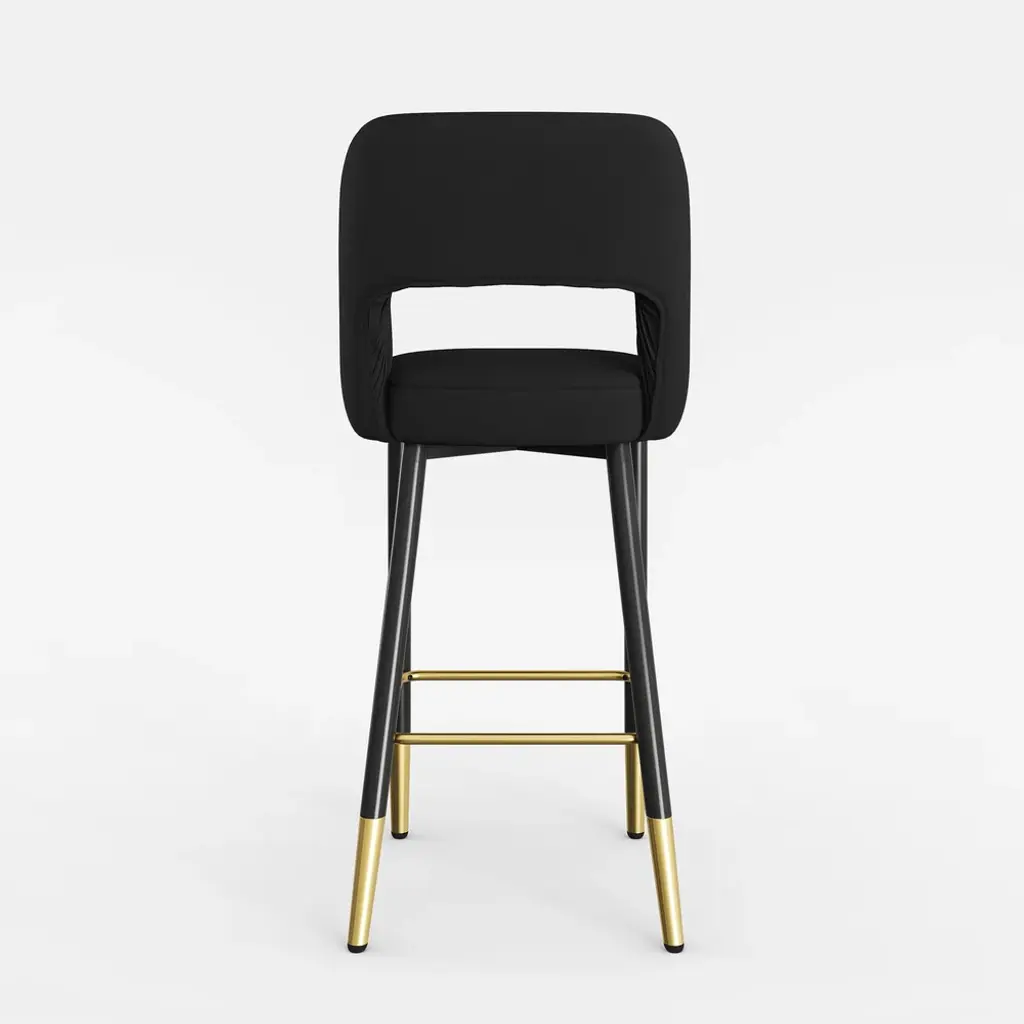 This grey velvet bar stool will add style to your kitchen or bar area. The low-back design ensures a very comfortable sitting experience. With soft velvet upholstery, a square seat, and black and gold metal legs, this makes for a chic contrast. Besides, it allows for extra comfort with its footrest and armrests. The perfect fit for any height bar or counter, this stool blends functionality and sophistication like no other for your home.