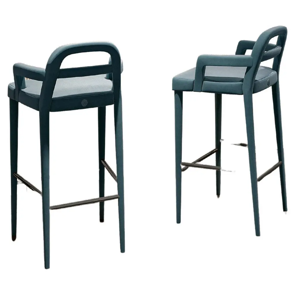 Set Of 6 Modern Velvet Bar Stools With Upholstered Gray