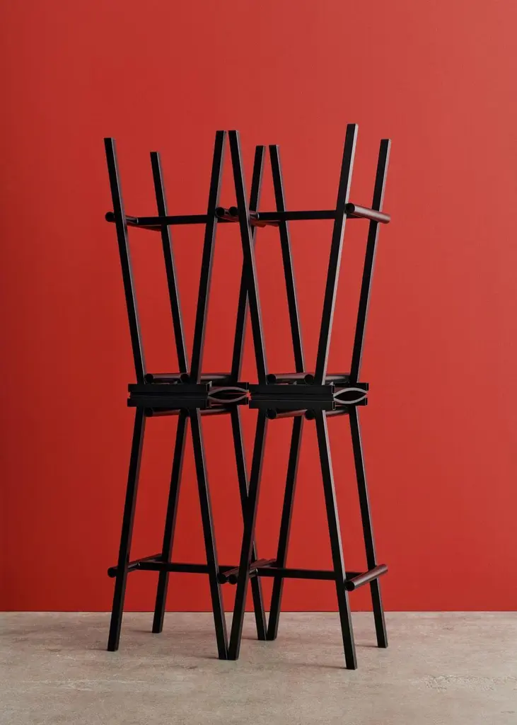 Set Of 6 Taburete 8 Bar Stool High-Black Powder Coated Steel-Marc Morro For Hay
