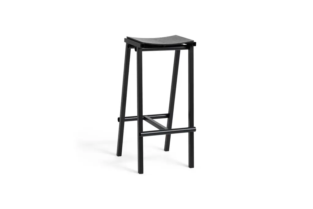 Designed by Spanish designer Marc Morro, Taburete 8 Bar Stool uses direct design language to create a functional and robust bar stool with a distinct yet minimalistic expression. Both the curved plywood seat and steel tubing frame are clearly presented, with the different components enhanced by their raw simplicity and bold use of colour. Available in two heights, with the oak veneer seat and steel frame in different finishes and colours, Taburete 8 combines the comfortable seat with industrial aesthetics to create a versatile stool that is easy to integrate in bars and restaurants, as well as in private homes.Frame: Black Powder Coated Steel Seat : Black Water-Based Lacquered Oak VeneerDimensionsW35,5cm /13.98 in. x D38cm /14.96 in. x H75cm /29.53 inDesigner Marc Morro was born in Majorca in 1984, leaving the island at the age of 18 to study industrial design at Elisava School in the city of Barcelona, where he is still based today. Marc strives for honesty and radical austerity in his designs, using his direct approach creating logical objects with minimalistic, clear constructions. He offers creative and development services for commissioned projects for a variety of individuals and companies. For HAY, Marc has designed the Taburete 8 Bar Stool.
