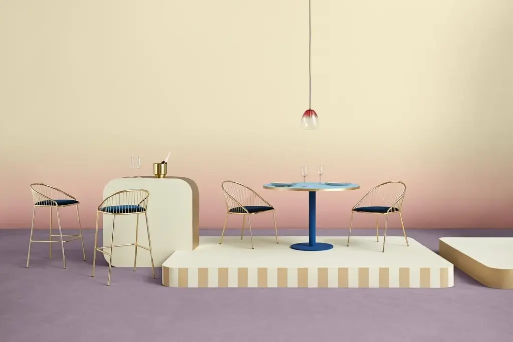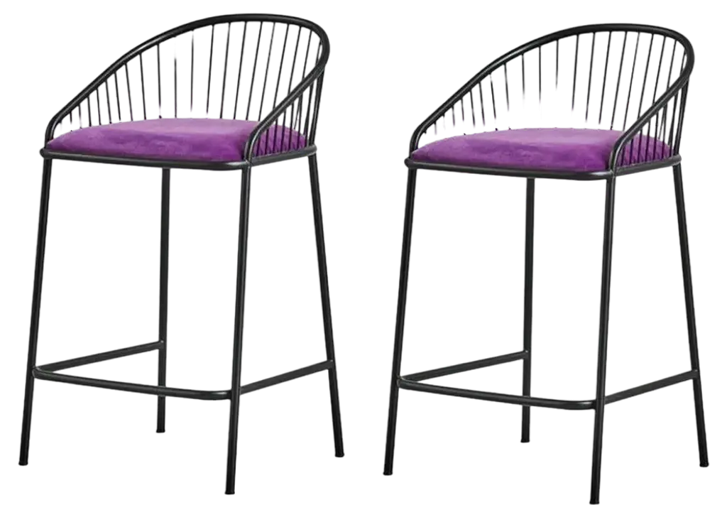 Pair of agora bar low stool by pepe albargues dimensions: w 50 x d 52 x h 87 cm seat 67 cm materials: iron strucutre and particles board. Foam cmhr (high resilience and flame retardant). Now suitable also for sheltered outdoor spaces. Painted or chromed iron structure. Agora bar stool has two different heights featuring a remarkable architectural wire backrest that brings a graphic and unique touch of elegance for any decorative areas. Vintage and modern lines have been exquisitely combined together to offer a contemporary and minimal design emphasizing its backrest. This piece is attributed to the mentioned designer/maker. It has no attribution mark and no official proof of authenticity, however it is well documented in design history. I take full responsibility for any authenticity issues arising from misattribution