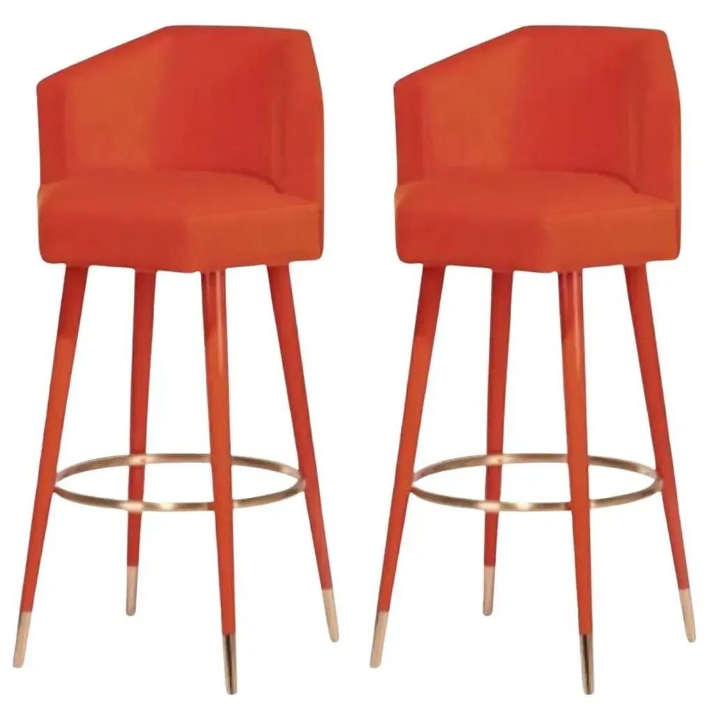 Set of 2 Beelicious bar stools, Royal Stranger Dimensions: 54.5 x 46 x 107 cm Materials: Upholstery Zinnia cotton velvet. Legs Zinnia lacquered wood with glossy finish. Feet covers and footrest Brushed Brass. Royal Stranger is an exclusive furniture brand determined to bring you the best unique pieces of art and design. Fusing design, art and the best craftsmanship, they strive to deliver the best state of the handmade art furniture. The design team works every day to create meaningful products that represent values such as passion, function, aesthetics and know-how. Values that are meant to represent Royal Stranger’s DNA. This dedication is present at all stages of production and the combination of craftsmanship and innovative design contributes to our final purpose: to produce certified high-quality products, made with passion and expertise and using royal materials such as gold leaf, rich woods and high quality lacquers. It was in 2013, as an architects, that Sofia Santos & Rui Santos started to push the boundaries of innovation in several retail design concepts for some of the best stores in Portugal. This will has always been present in their work, and that’s how the brand was born. This piece is attributed to the mentioned designer/maker. It has no attribution mark and no official proof of authenticity, however it is well documented in design history. I take full responsibility for any authenticity issues arising from misattribution