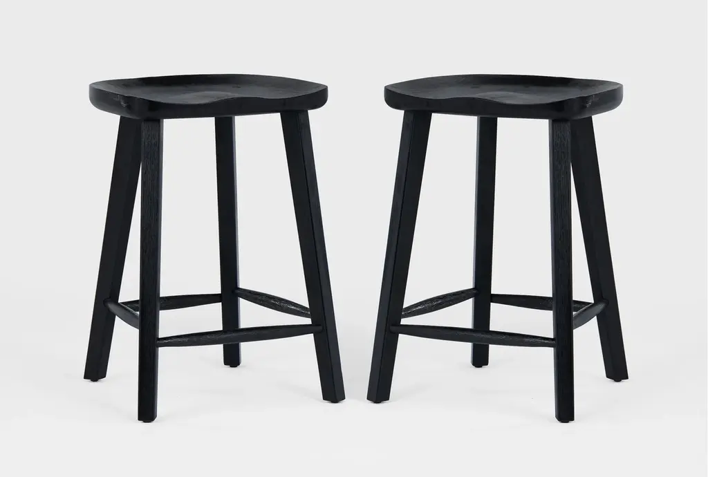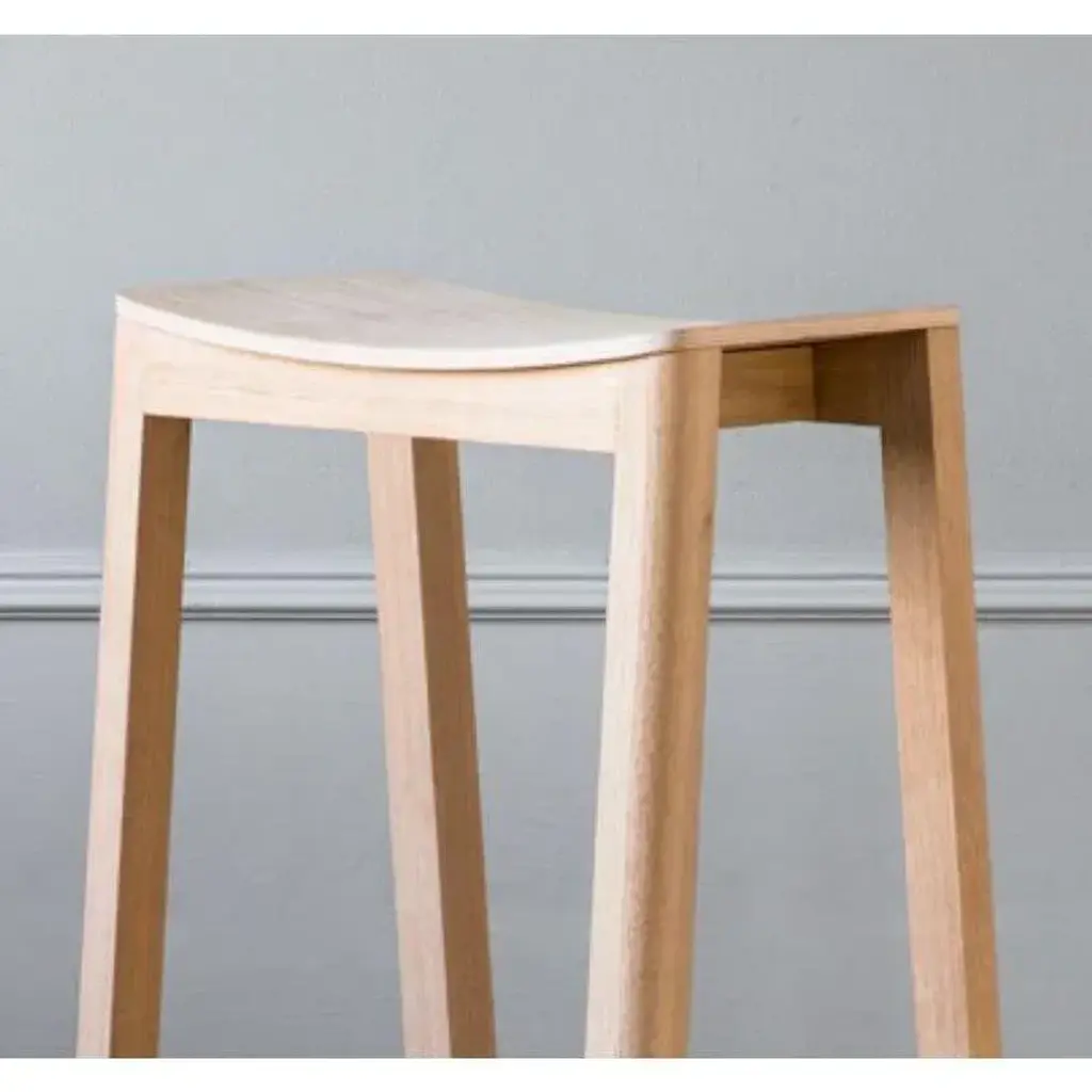 Set of 2, Halikko bar stools by Made By Choice Dimensions: 40 x 34 x 66 cm Materials: solid oak Standard finishes: natural wood / painted black. Also available: upholstery in fabric or std. fabric (category 1 & 2), custom color or ash. Named after the hometown of our manufacturing, Halikko series consist of light, sleek and comfy furniture with a simple structure and obscurely quirky characteristics. Based on a 35x35 mm structure in solid oak, Halikko draws a natural continuation of the exploratory work by Choice on straight-forward structures, and expressive graphic surface treatments. Halikko draws its simple characteristics based on pure lines. Halikko is as pleasing to use at home as in collective spaces. About Made by Choice: Nordic Happiness. Nordic Happiness is our grand theme and guiding star. Studies show that Nordic people are among the happiest on Earth. Nordic happiness is composed of authentic values and sustainable choices. The vision of Choice is based on the added value of collective creation while promoting sustainable Nordic values through authentic design. Rooted in the traditions of Finnish woodworks, Made by Choice is a creative powerhouse of collaborative thinkers, believers and makers, establishing a global brand for the 21st century. Committed to producing durable, bold and innovative designs, we combine contemporary woodworking methods and modern technology. Halikko is home to our 4000 square metre campus where we turn abstract concepts into tangible objects. Our team in our office in Helsinki coordinates all operations and installations. Made by Choice's agile, purpose driven approach means all new products are developed on demand, for a specific project and need, and carries the authentic story of it's reason of existence. Our products are developed and manufactured at our own factory in south-western Finland by some of the best craftsmen in the world. Choice is inspired by heritage and Nordic urban lifestyle. We are driven to explore the boundaries of our discipline to create new narratives. Choice collaborates with leading designers and ambitious interior architects on site-specific projects to create new urban spaces. Choice was founded by Lasse Laine, Sebastian Jansson and Niclas Ahlström – based on the common vision and mutual values to create a distinctive, value-driven brand and a new design heritage.