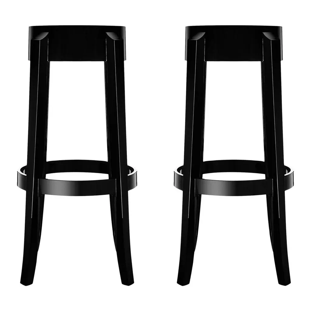Set of 2, Lammi bar stools, 74 cm, tall & black by made by choice with Saku Sysiö. Dimensions: 47 x 38 x 74 cm. Materials: Oak. Standard finishes: natural wood / painted black. Also available: lammi bar stool (66cm) & custom colors on request. Saku Sysiö drew inspiration for the Lammi bar stool from the place of the same name in southern Finland. Saku has a summer cottage in Lammi and the organic, minimalistic shape of the stool was inspired by a nearby lake. The pond like seat form grows towards the floor with the footrest is like a ring in the water. Lammi is a solid piece of furniture that works well in environments with a softer design language.