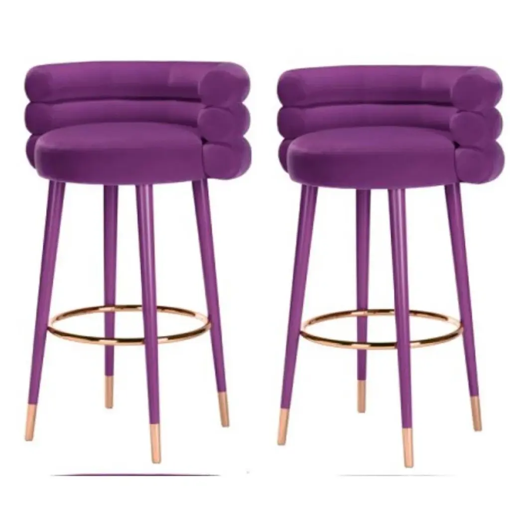 Set of 2 marshmallow bar stools, Royal Stranger Dimensions: 100 x 70 x 60 cm. Materials: Velvet upholstery, brass. Available in: Mint green, light pink, royal green and royal red. Royal stranger is an exclusive furniture brand determined to bring you the best unique pieces of art and design. Fusing design, art and the best craftsmanship, they strive to deliver the best state of the handmade art furniture. The design team works every day to create meaningful products that represent values such as passion, function, aesthetics and know-how. Values that are meant to represent Royal stranger’s DNA. This dedication is present at all stages of production and the combination of craftsmanship and innovative design contributes to our final purpose: to produce certified high-quality products, made with passion and expertise and using royal materials such as gold leaf, rich woods and high quality lacquers. It was in 2013, as an architects, that Sofia Santos & Rui Santos started to push the boundaries of innovation in several retail design concepts for some of the best stores in Portugal. This will has always been present in their work, and that’s how the brand was born. This piece is attributed to the mentioned designer/maker. It has no attribution mark and no official proof of authenticity, however it is well documented in design history. I take full responsibility for any authenticity issues arising from misattribution