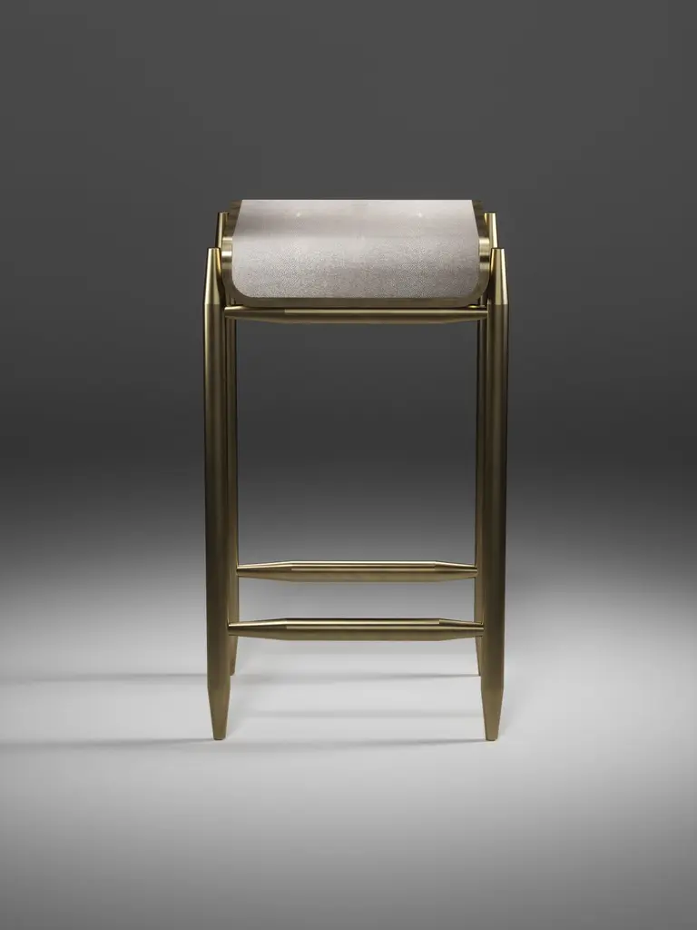 Shagreen Bar Stool With Bronze-Patina Brass Details By Kifu Paris