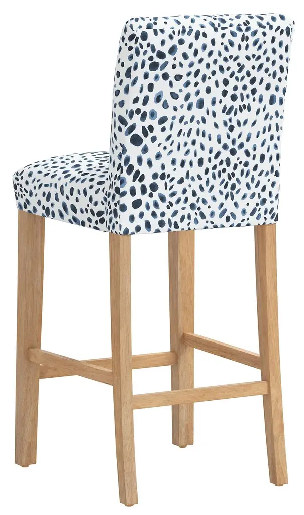 Exclusive to One Kings Lane: Cheetah-print upholstery complements the tailored silhouette of this barstool. Ample padding of the seat and the back along with a well-placed footrest ensure long-lasting comfort.
