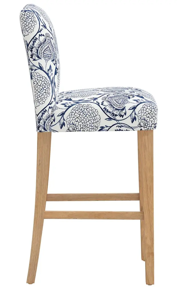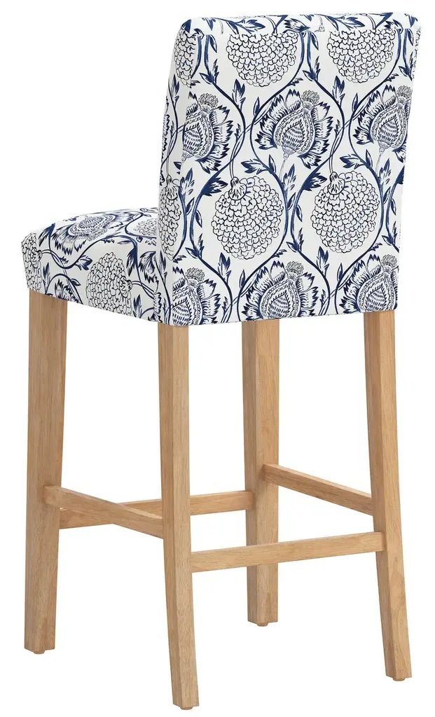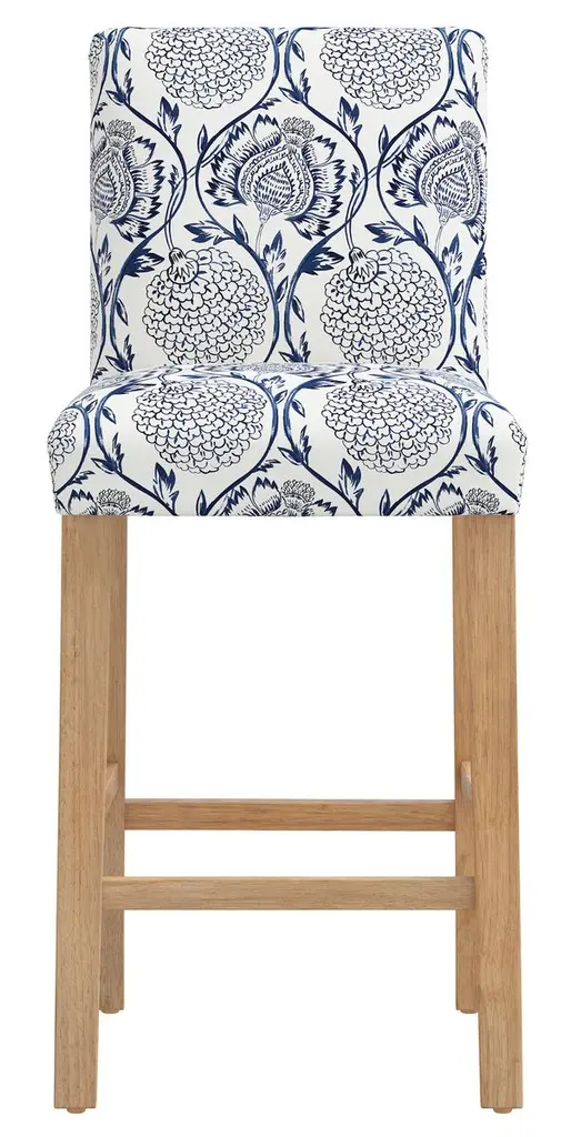 Exclusive to One Kings Lane: An oversize floral motif complements the tailored silhouette of this barstool. Ample padding of the seat and the back along with a well-placed footrest ensure long-lasting comfort.