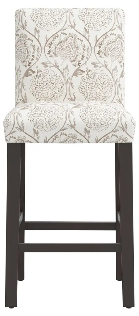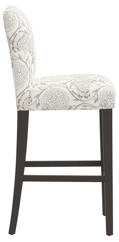Exclusive to One Kings Lane: An oversize floral motif complements the tailored silhouette of this barstool. Ample padding of the seat and the back along with a well-placed footrest ensure long-lasting comfort.