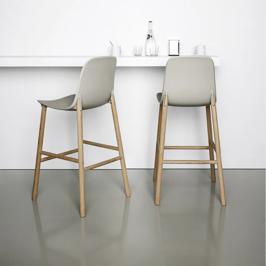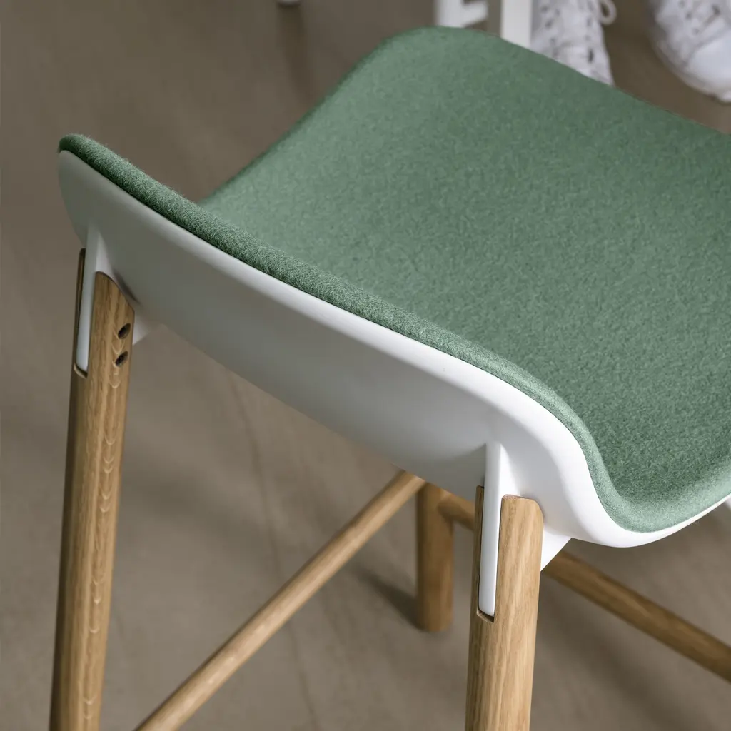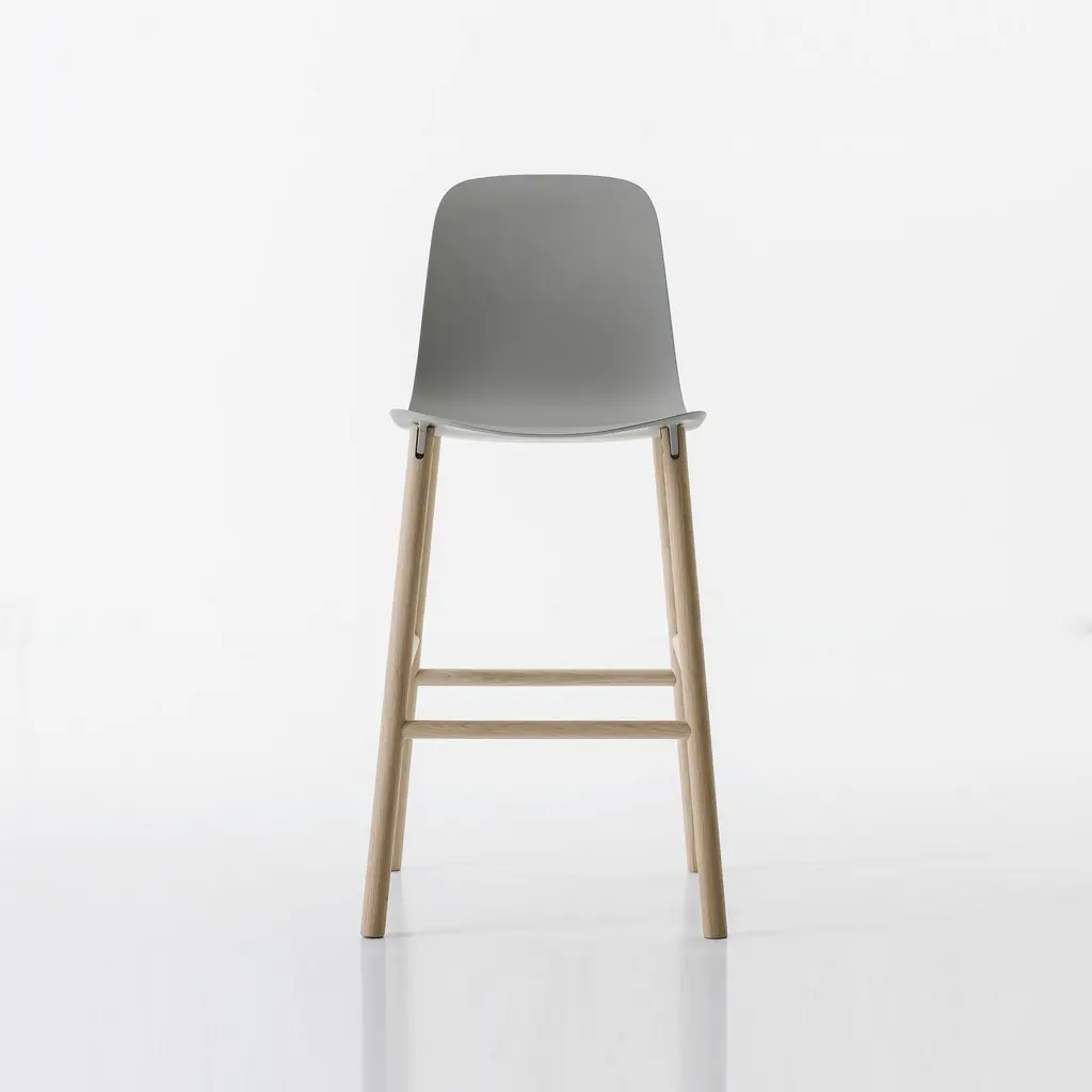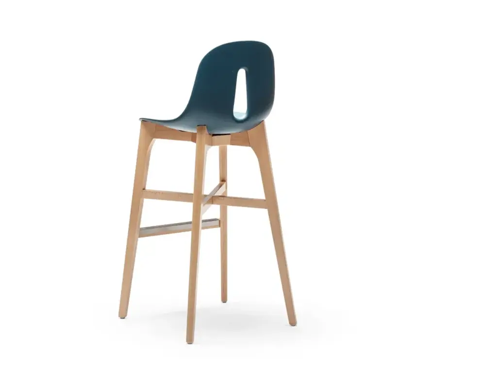 The philosophy of Eva Paster and Michael Geldmacher is based on observing nature and on a profound knowledge of contemporary lifestyles. To create the coupling elements between the structure and base of the Sharky chair, which won the Interior Innovation Award in 2015, the designers were inspired by the lightness and strength of shark fins. The result is a slimline, sinuous yet very hardwearing seat. The Sharky chair, stool with a high backrest and stool with a low backrest are available with wood legs or with painted aluminium legs with visible welded details. The polyurethane structure is made even more comfortable with a padded seat or cushions, available in a wide variety of colours. The option of adding a Lips cushion, designed for outdoor use, adds a touch of customization and extra comfort to these chairs.