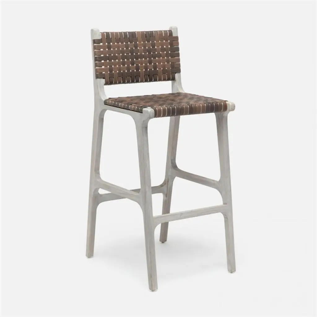 Hand-woven seating and a minimal teak silhouette create a charming, textural look in our Shaw outdoor barstool. Cover or store indoors during inclement weather or when not in use.