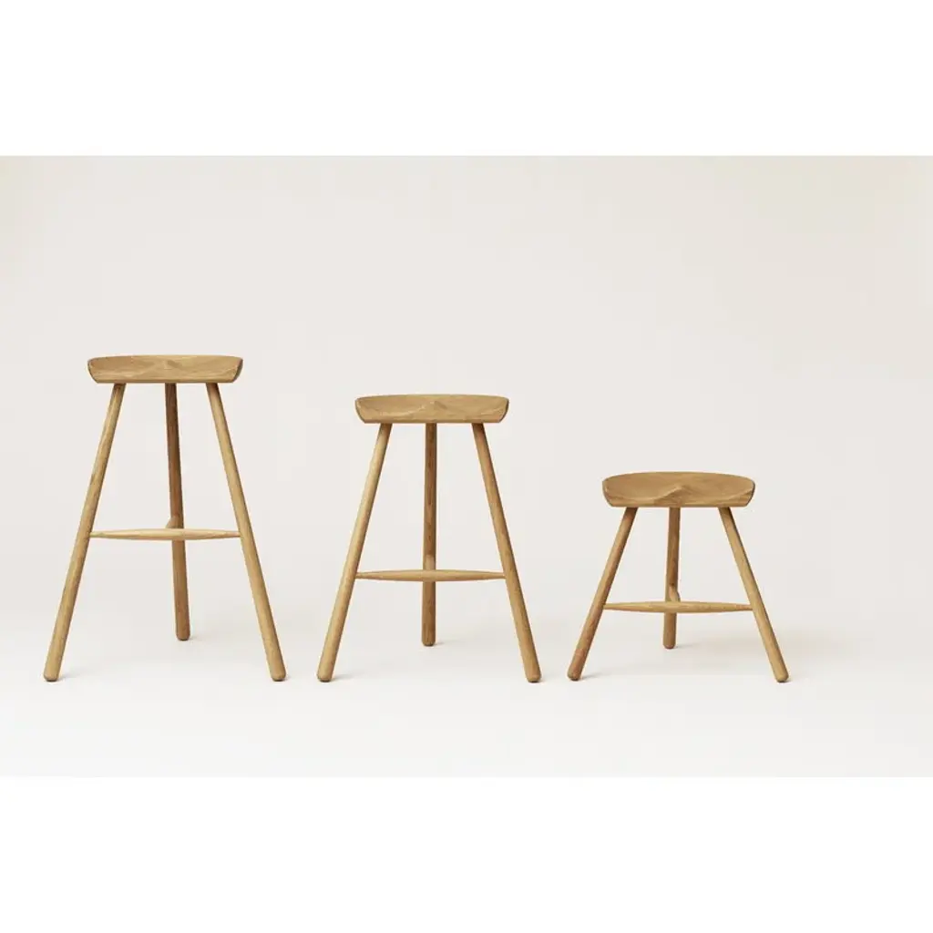 Shoemaker Chair by Form & Refine is a genuine Danish design classic that was released already in 1936. The Shoemaker Chair bar stool consists of a sleek, three-legged base and an anatomically shaped seat that provides a comfortable and straight sitting posture. Carved from a solid piece of wood, the manufacturing requires fine woodworking skills, and every process is finished by hand. Since the 1970s, Shoemaker Chair has been produced and developed by the Werner family, and over the years, they have optimized the chair to be even more stable and durable. Thanks to its functional design and timeless appearance, Shoemaker Chair will complement various décors and last for generations to come.