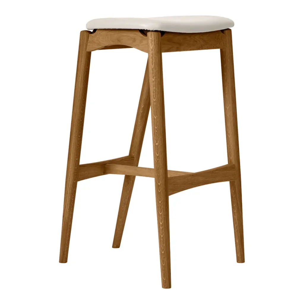 The new and refined barstool takes its origin from the timeless Sibast No 7 dining chair designed in 1953 by Helge Sibast and pays homage to the lines and the spirit of the Danish Modern movement from a contemporary perspective. Using the unique details from the Sibast No 7, such as the tapered back legs and the curved details, the dining chair has been transformed into the bold and generous Sibast No 7 bar stool. The upholstered seat together with the curved design makes the bar stool exceptionally comfortable. It comes in two heights and fits perfectly into private residences, kitchens as well as restaurants, bars and hotels.