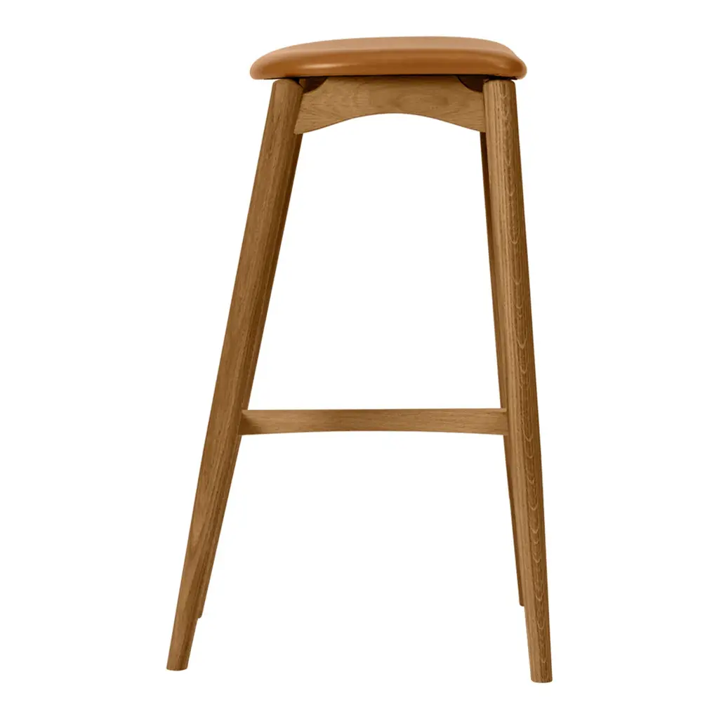 The new and refined barstool takes its origin from the timeless Sibast No 7 dining chair designed in 1953 by Helge Sibast and pays homage to the lines and the spirit of the Danish Modern movement from a contemporary perspective. Using the unique details from the Sibast No 7, such as the tapered back legs and the curved details, the dining chair has been transformed into the bold and generous Sibast No 7 bar stool. The upholstered seat together with the curved design makes the bar stool exceptionally comfortable. It comes in two heights and fits perfectly into private residences, kitchens as well as restaurants, bars and hotels.