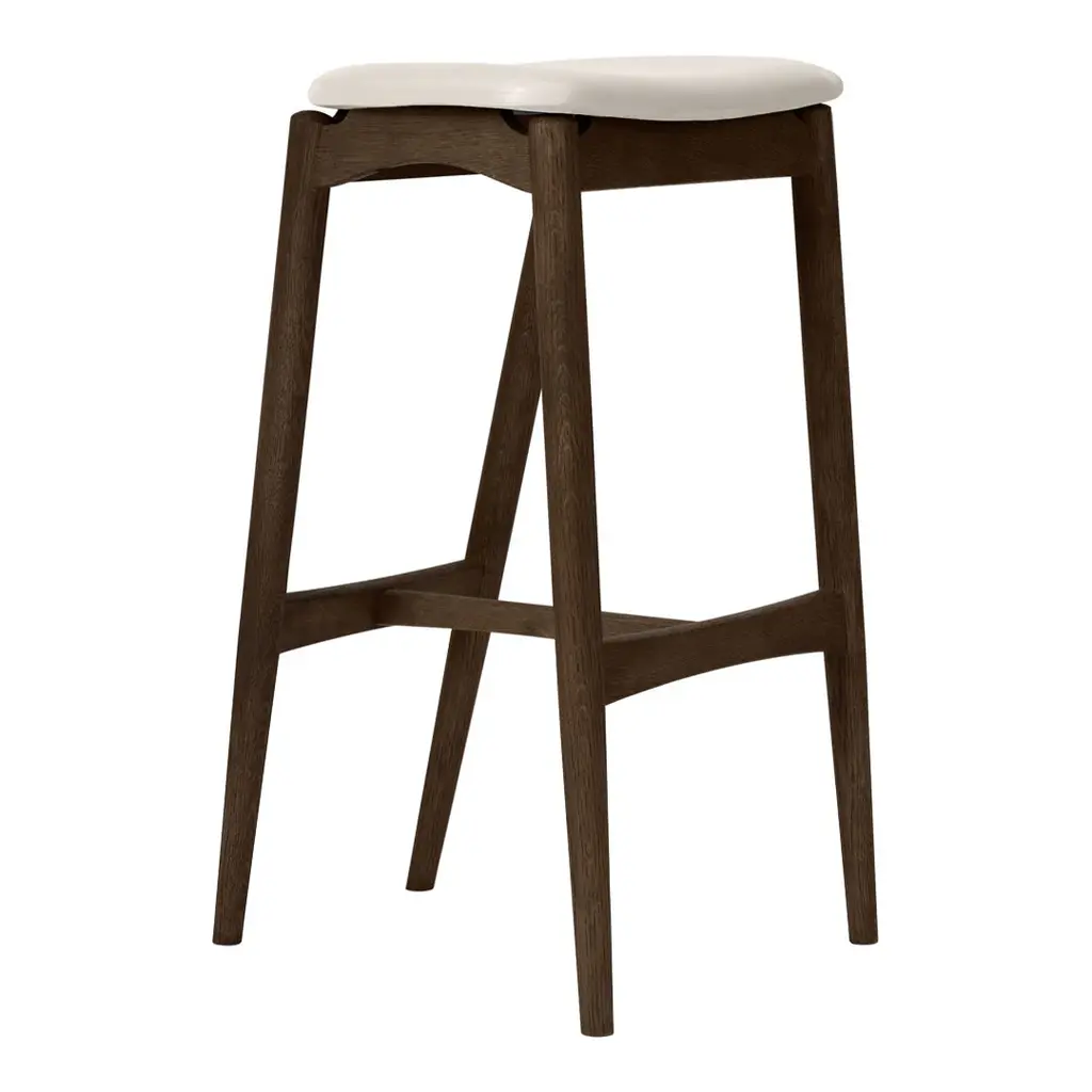 The new and refined barstool takes its origin from the timeless Sibast No 7 dining chair designed in 1953 by Helge Sibast and pays homage to the lines and the spirit of the Danish Modern movement from a contemporary perspective. Using the unique details from the Sibast No 7, such as the tapered back legs and the curved details, the dining chair has been transformed into the bold and generous Sibast No 7 bar stool. The upholstered seat together with the curved design makes the bar stool exceptionally comfortable. It comes in two heights and fits perfectly into private residences, kitchens as well as restaurants, bars and hotels.