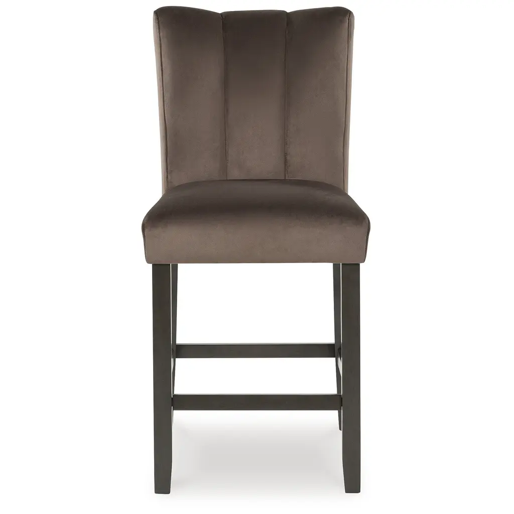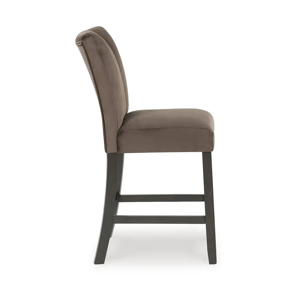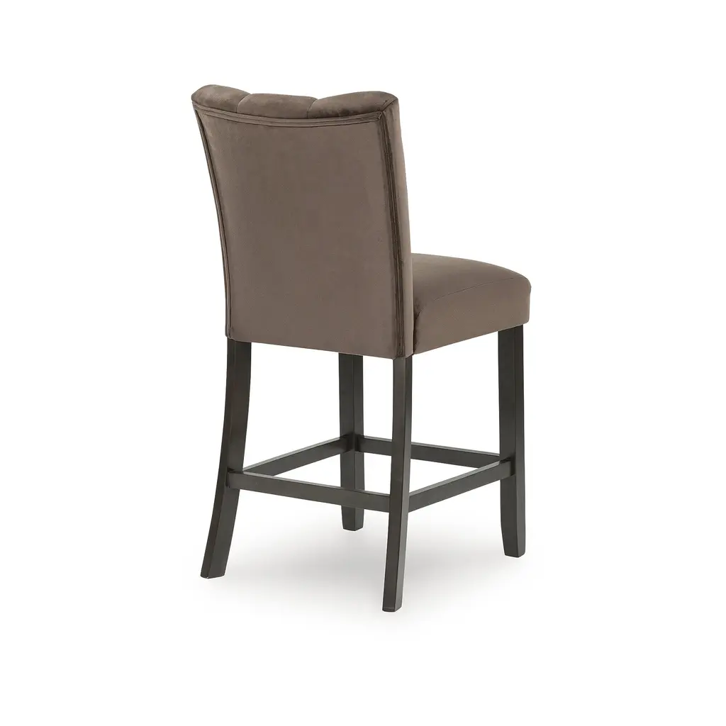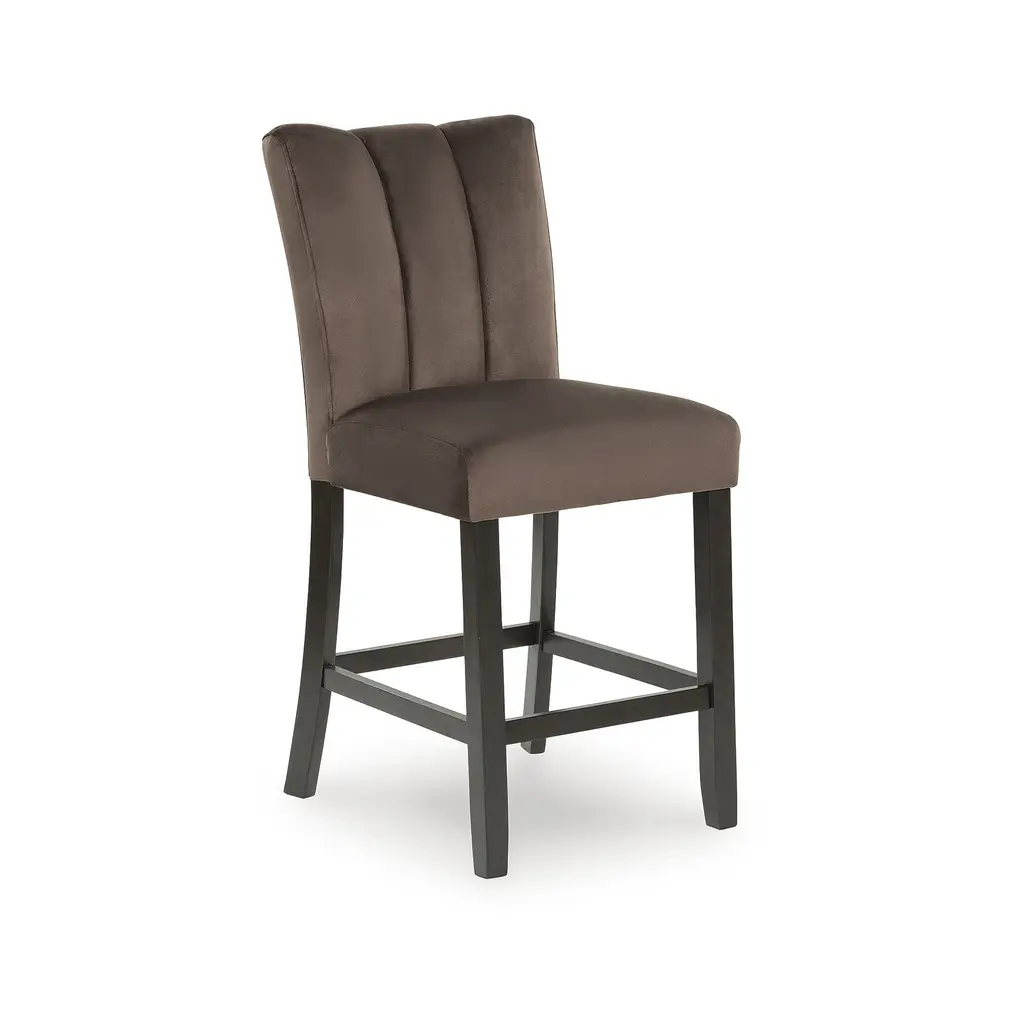 This counter height bar stool reflects your highly contemporary point of view. Its ultra-soft velvet upholstery in chocolate brown is a feast for the senses. Channel stitching details give the stool an elevated, tailored feel. What a delicious choice for an elegantly elevated dining room.Features:Made with solid wood framePolyester velvet upholsteryIncludes adjustable levelersAssembly required