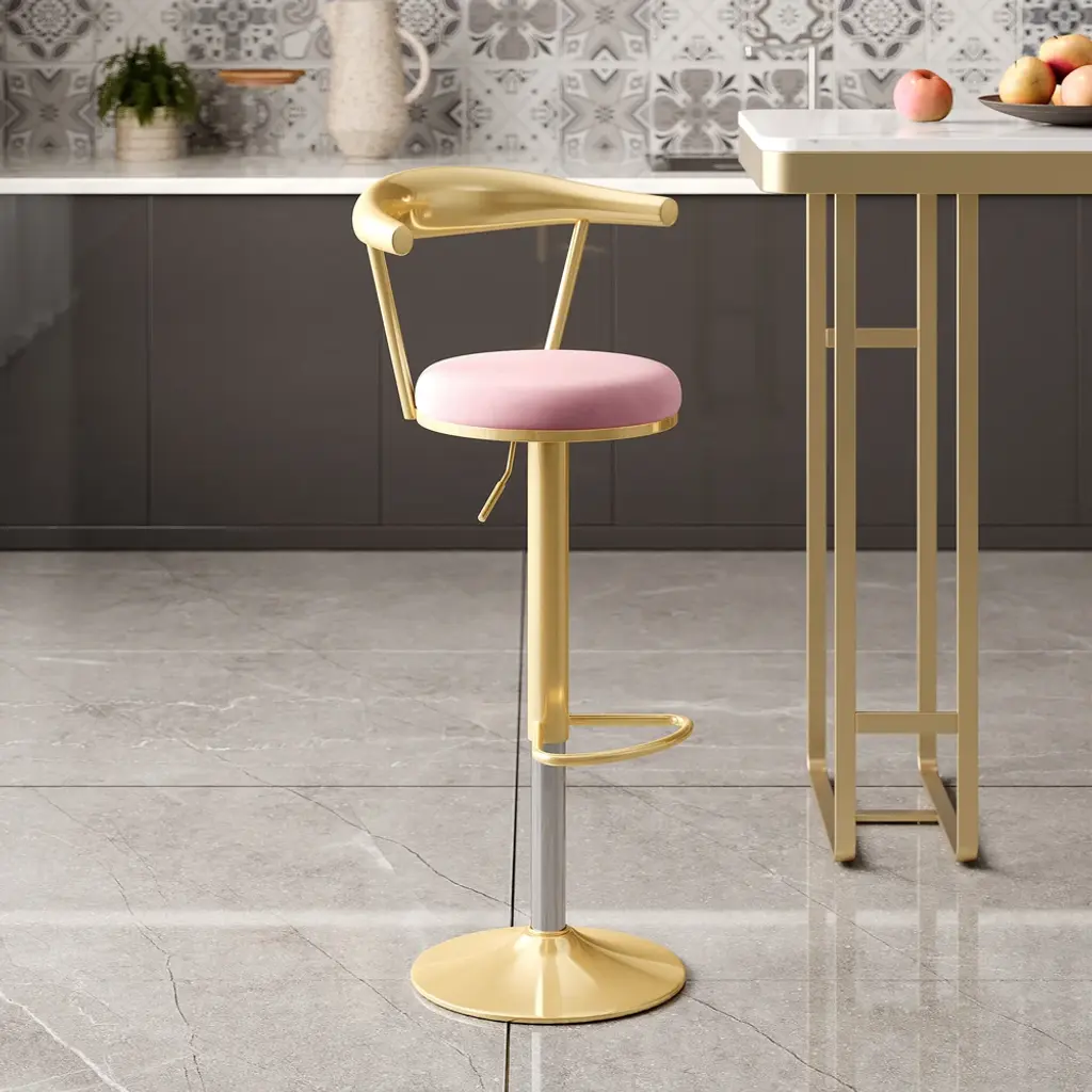 This luxury bar stool features a gold-plated design and lavish upholstery. This bar stool's elegant design makes it a perfect fit for both modern and contemporary homes. Perfect for your bar or kitchen!