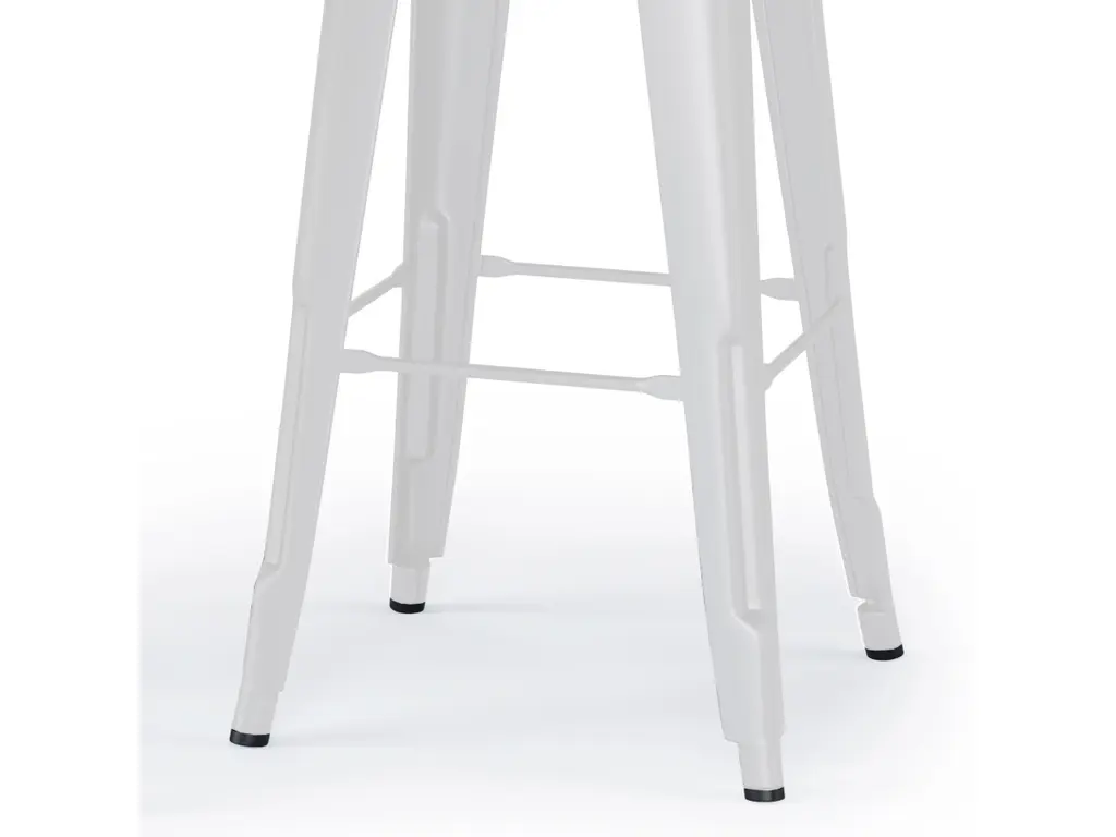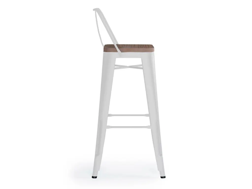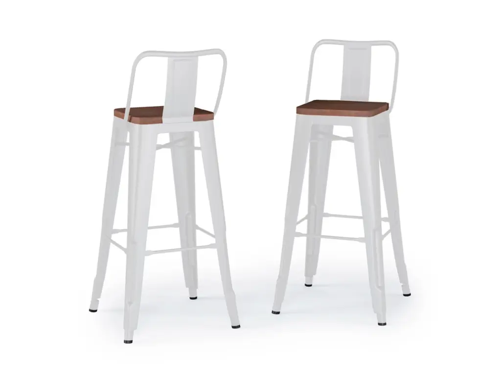 Bring together contemporary styling and industrial design with the Rayne 30 inch Metal Bar Stool. The curved back, solid wood seat and footrest offers comfort and support. A cross brace underneath the seat adds extra stability and the peg shaped legs features plastic caps that prevent damage to the flooring. Perfect for pulling up to a bar or high top table.