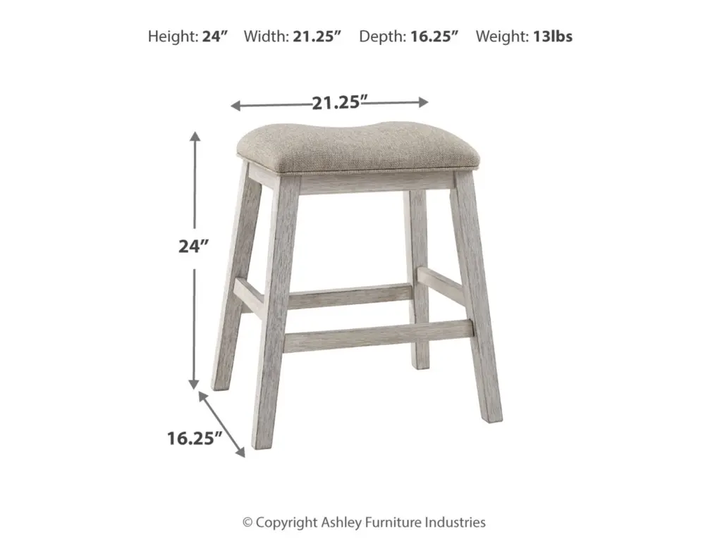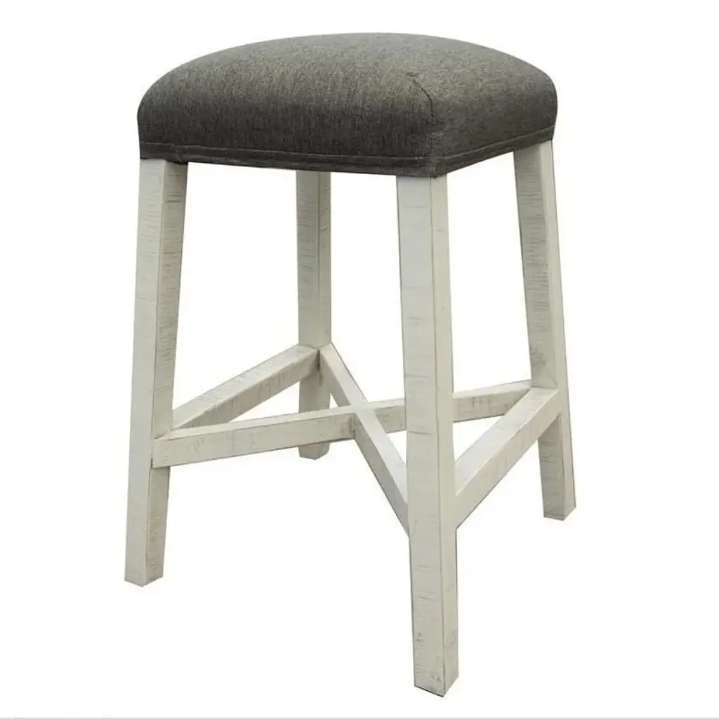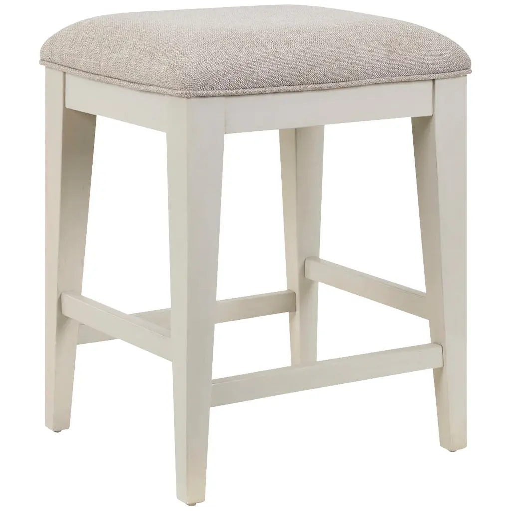 The Skempton upholstered stool invites you to raise the bar on small space living. An inspired choice for coastal chic or modern farmhouse settings, this comfortably cushioned stool sports a grayish white finish with rub-through effect for timeworn appeal.