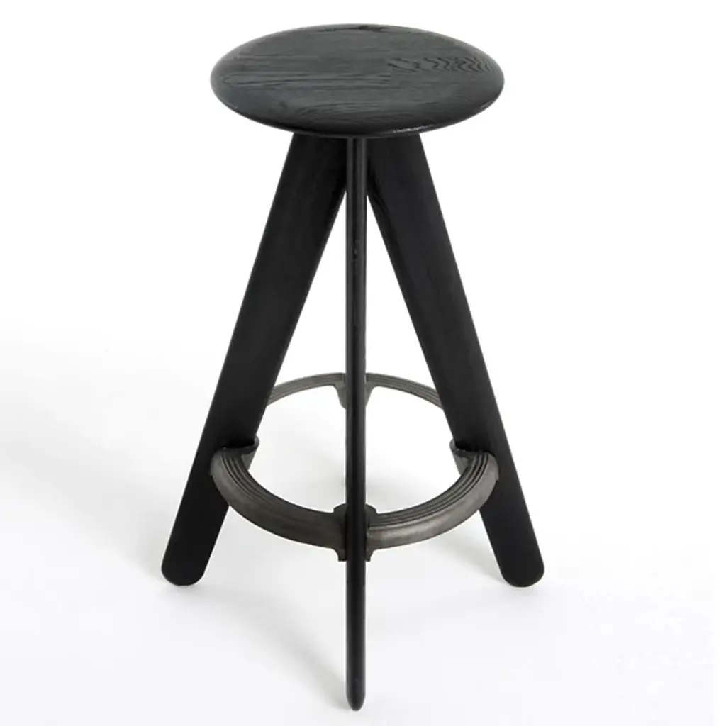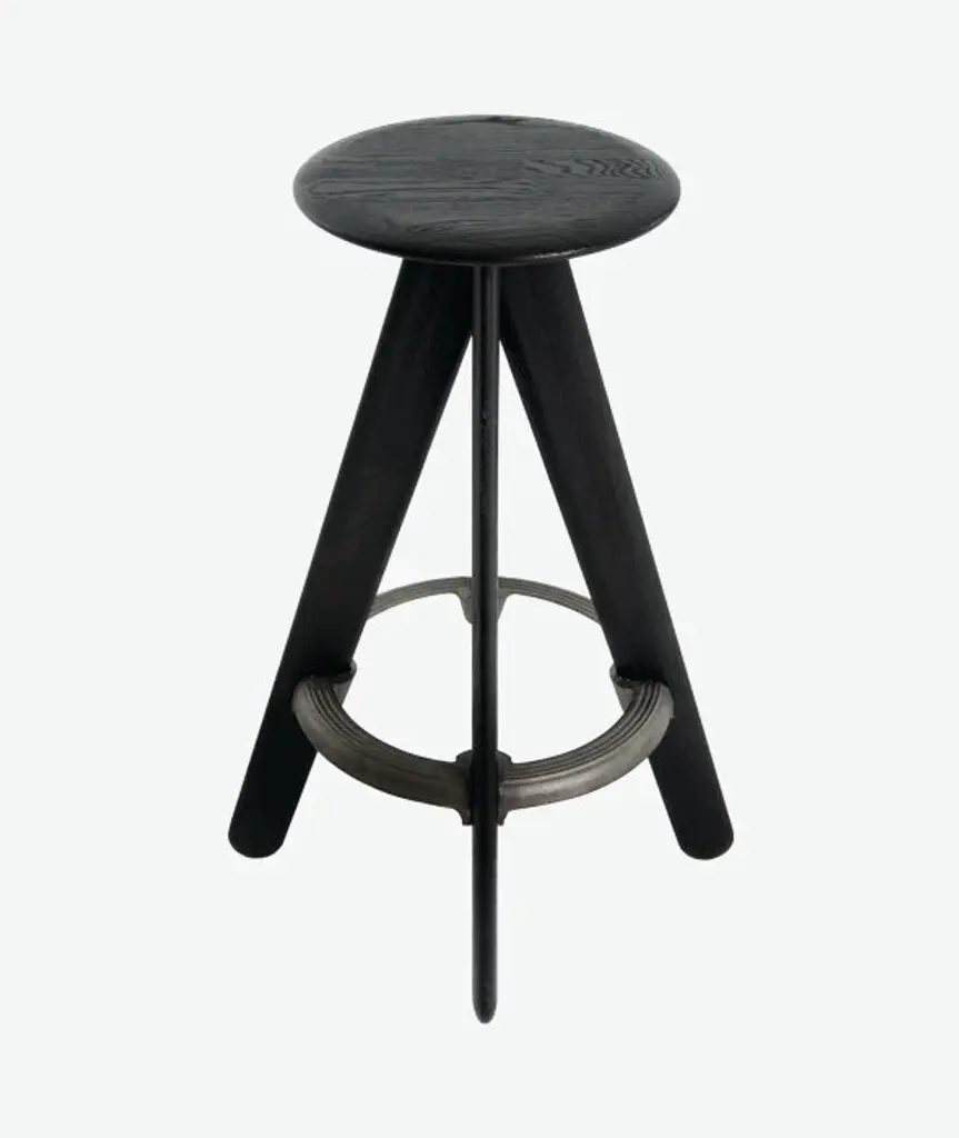 Presented by highly acclaimed designer Tom Dixon, the Slab Bar Stool was made to be a celebration of solid wood’s natural beauty, and in this case, oak specifically. Made in Lithuania, this is a modern bar stool that is brushed deeply with the intention of exposing the grain, allowing textures and shadows to take center stage. Finished in a delicious black lacquer, it’s built with a contrasting center ring nestled at the base of the leg triad. Undoubtedly, The Slab Bar Stool will add an elevated sense of luxe to your libation experiences.